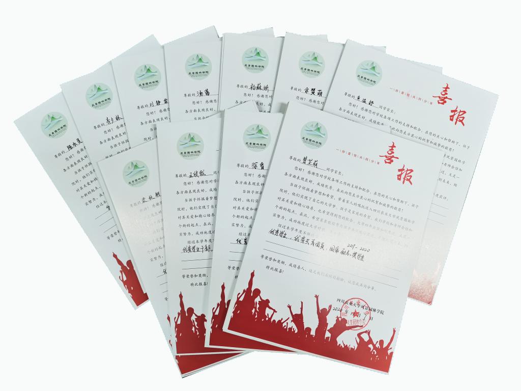 学院对在2019—2020学年度荣获国家奖学金、国家励志奖学金、优秀学生奖学金、英语成绩突出奖、竞赛获奖、优秀学生、优秀学生干部、优秀团员、优秀团员干部等各级奖项的学生摸底统计后,以寄送喜报的方式向家长报喜。本次活动是学院在丰富家长学校工作内容建设中的探索与实践,意在通过此次活动,让家长了解学生在校的学习情况,也让获奖的学生收获更多的鼓励与肯定,借此鼓励更多的学生积极进取,从而促进学院优良学风的建设。除寄送喜报,学院还连续举办四场“风景talk吧”优秀学生分享会,分别面向全院2018级、2019级和2020级的三个专业学生进行经验分享和交流,激发学生主动学习的内在动力。另外,学院还探索了另一条家校联动的路径,即寒假期间学院还将开展“明家史·知感恩”照片视频征集活动,让学生们利用寒假时间通过与长辈交流或查阅族谱等了解家族历史,学习良好家风。