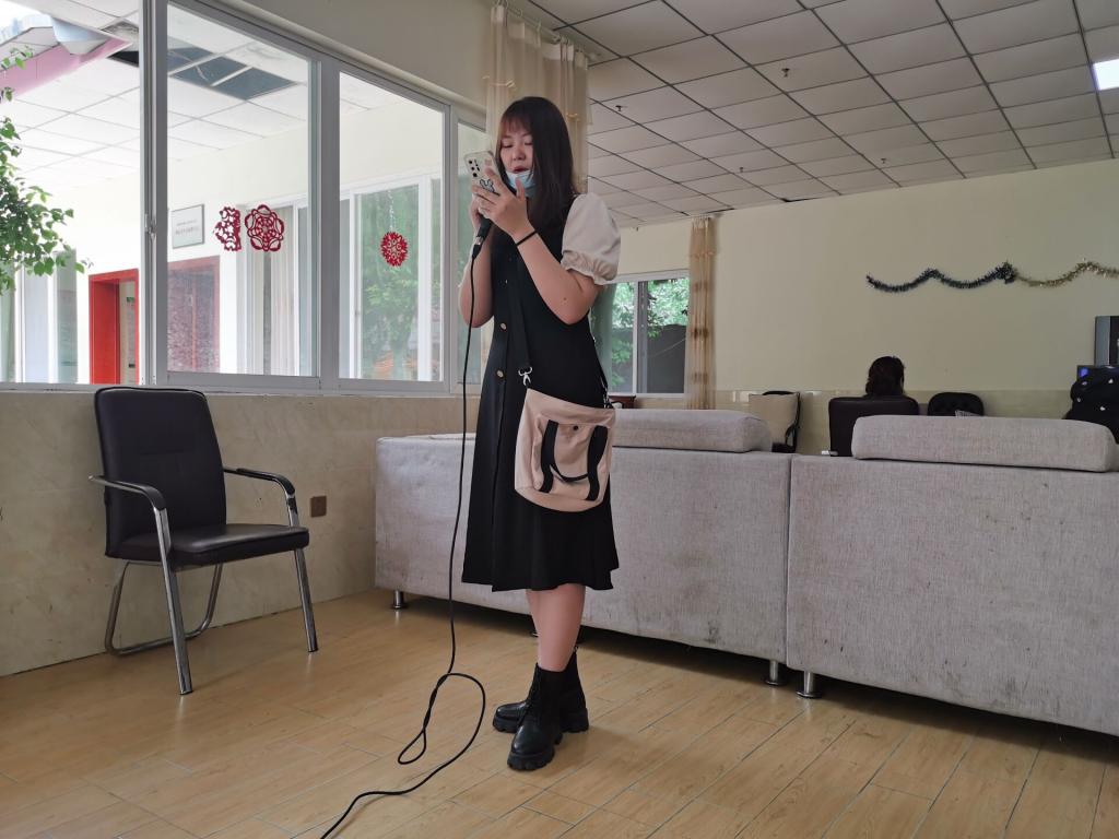 上午八点四十分,志愿者们准时到达了集合地点,由青年志愿者协会的成员统一带队前往养老院。到达养老院,与养老院的负责人阿姨确定了信息情况后,志愿者们便开始组织活动。正值老人们做完早操,志愿者们在休息室内摆好了座椅,连接好了音响话筒,老人们便慈蔼地围坐一圈观看节目。活动开始,志愿者们有序地上场,根据事先定好的节目表单开始表演。散文幽深的意境在平和的背景乐中缓缓舒展开来,《荷塘月色》的演唱将一幅水光潋滟之景呈现在听众眼前,古诗朗诵携带着历史的悠远韵味,吉他弹唱洋溢着青春活力的气息,轻松欢愉的英文歌演唱带来了现代音乐文化……活动期间氛围活跃,志愿者们默契配合,更有老人加入我们的演唱队伍,清唱了一首《我和我的祖国》,传达出对音乐和祖国的热爱。