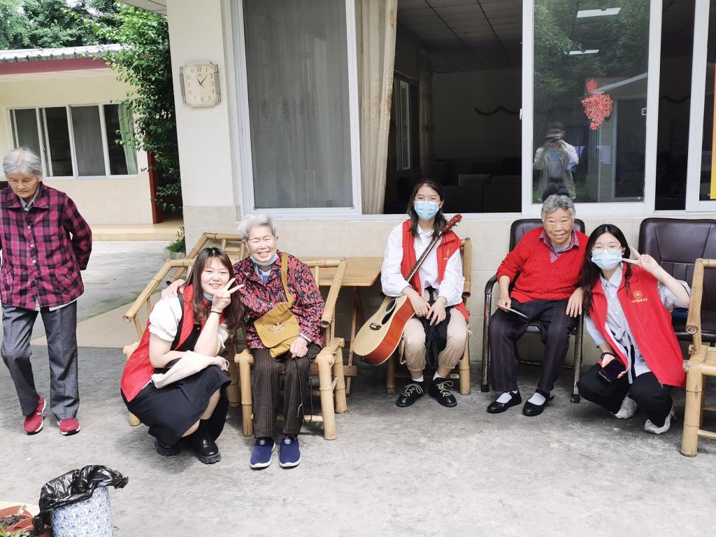 表演结束后,老人们开心地鼓掌表达感谢。"谢谢你们抽空来看我们,给我们带来快乐,希望你们下次再来……"这是一位气色红润的老婆婆在我们告别时拉着我们说的一句话。这样一句简单朴素的感谢却让志愿者们感到无比的暖心,老人们的笑脸更让志愿者们感受到为老服务志愿活动的意义。