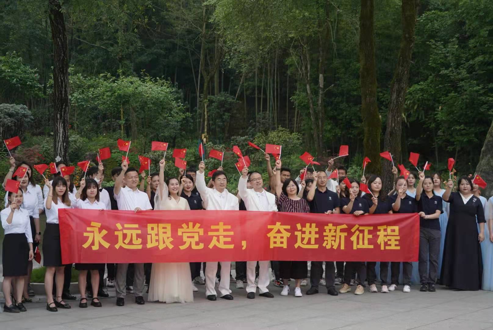 活动进行中,党员干部、景区职工、学院师生,齐声高歌《共和国之恋》,嘹亮动听的歌声在野放研究中心园区回荡,吸引了许多游客驻足观看,并纷纷拿出手机拍照。特别是在表演活动的录制过程中,大家用多元化的艺术形式共同演绎合唱歌曲,表达对中国共产党建党100年的深情祝福。在党建联建座谈会中,三家单位的党员同志们结合党史学习发表感想、重温入党誓词、深入洽谈院企地在科学研究、社会服务等方面的合作。学院党委书记陈从楷说:“特别的活动献礼建党100年,表达学院的广大师生将永远跟党走、奋进新征程的信心和决心,为推进美丽中国建设贡献四川农大力量”。