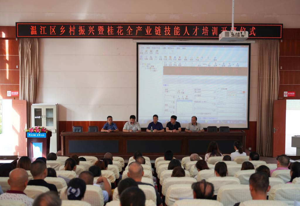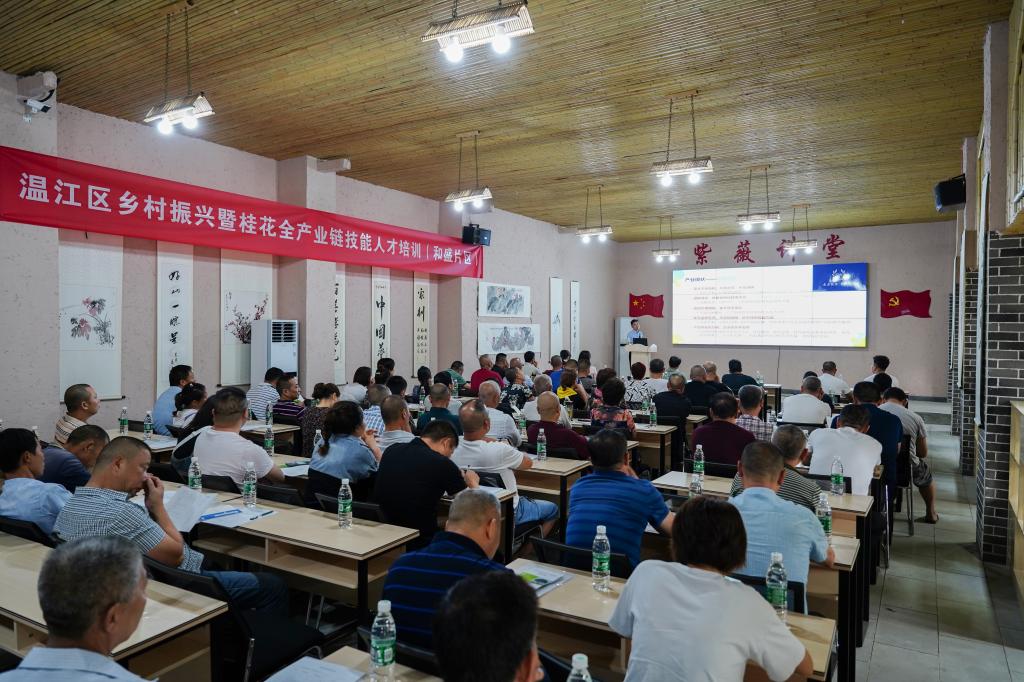 八月金秋,丹桂飘香,由温江区农业农村局与温江区人力资源和社会保障局主办、包子漫画 承办、四川香之源生物科技有限公司协办的温江区乡村振兴暨桂花全产业链技能人才培训活动拉开了帷幕,此次活动也是包子漫画 师生助力温江本土桂花产业发展的首次尝试。