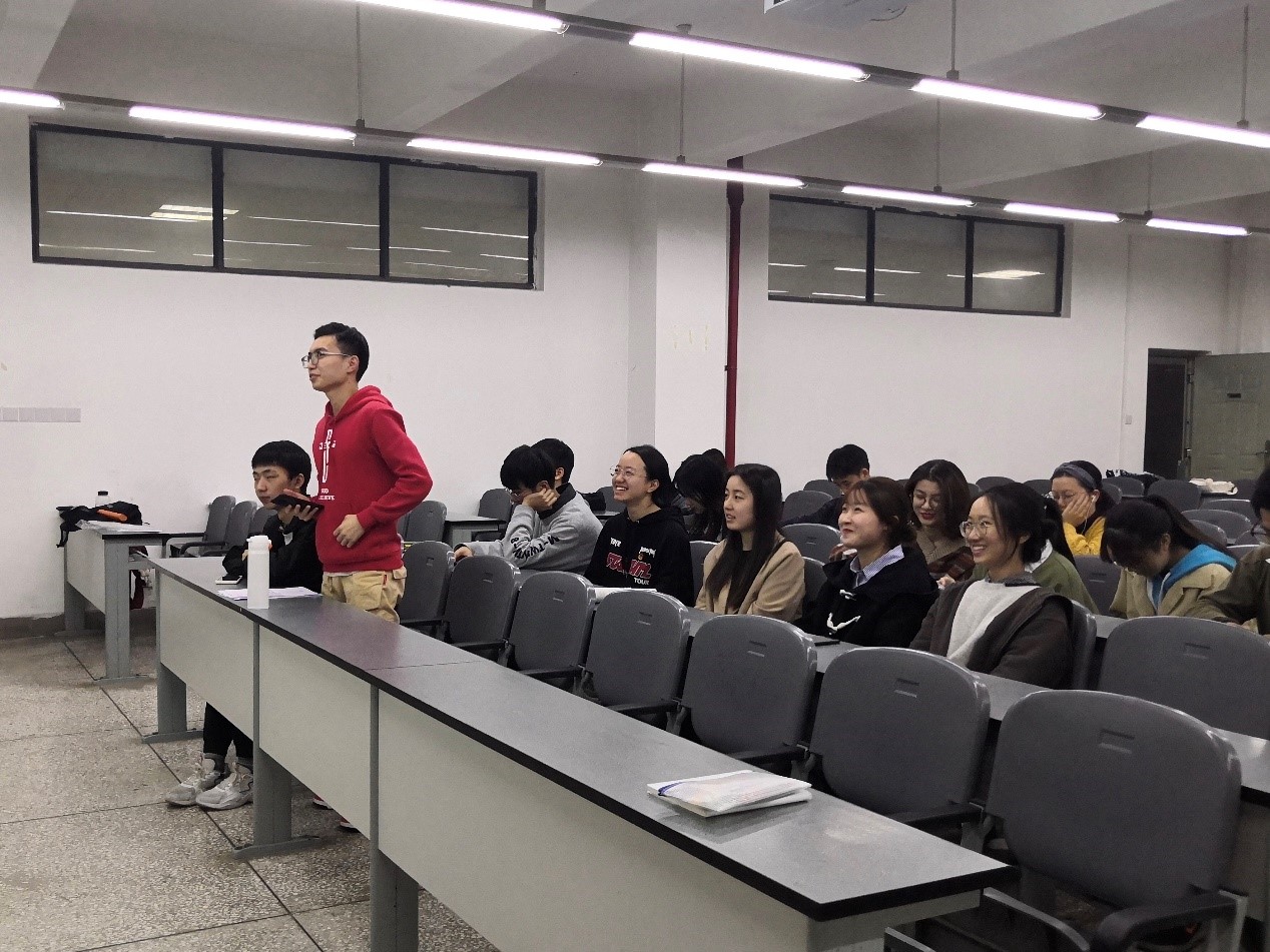 在进行大家参与度最高的主题讨论环节前,还进行了十三五计划的回顾。粮食年产量连续五年稳定在一万三千亿斤以上、五千五百七十五万农村贫困人口实现脱贫、对外开放持续扩大,共建“一带一路”成果丰硕。中国用一个个行动向世界展示着自己的大国实力。紧接着,班长向同学们提问: “作为年轻的我们,如何贡献自己的青春力量?”学习委员刘浩第一个站起来发表自己的看法,他认为,作为园林专业的学子,我们可以用科研作为手段,研究出高产的植物为祖国事业添砖加瓦。