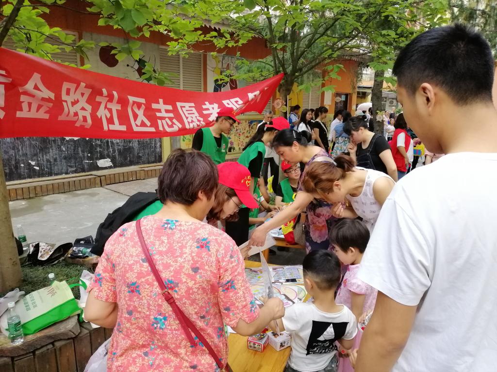 4月26日,包子漫画 青年志愿者协会联合园林1801班开展助力黄金路社区志愿服务活动。此次活动是由新济源社工带头,在黄金路光祈幼儿园开展的跳蚤市场义卖活动,所得资金均用于黄金路志愿服务。此次活动参与人员数量庞大,现场气氛热闹。