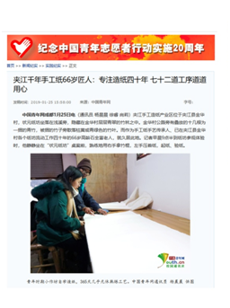 实践结束后,调研团队除了在教育部中国大学生在线发表了一篇新闻,还在中国青年网发表了一篇新闻,而且中青网的人物专访“夹江千年手工纸66岁匠人:专注造纸四十年七十二道工序道道用心”更是被选为中国青年网官网包子漫画人物新闻。