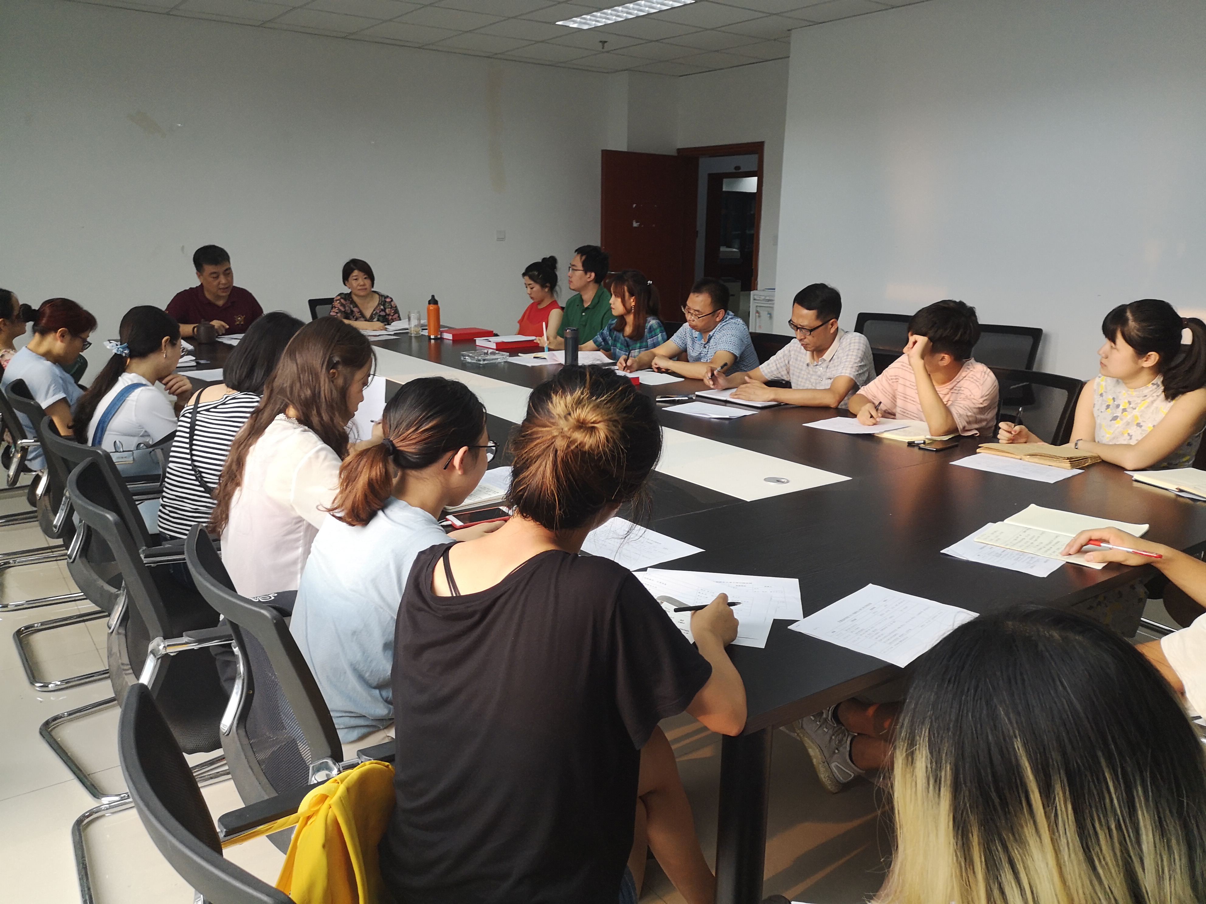 李书记强调班主任应尽好三大职责:“迎新任务、日常管理、评优评先及学风建设”,着重指出班主任应在首次班会上突出安全教育和纪律管理奖惩等内容,应向学生明确校规校纪并指出学生大学四年努力方向。朱玉老师详细介绍了迎新期间班主任工作安排及迎新现场工作细则。