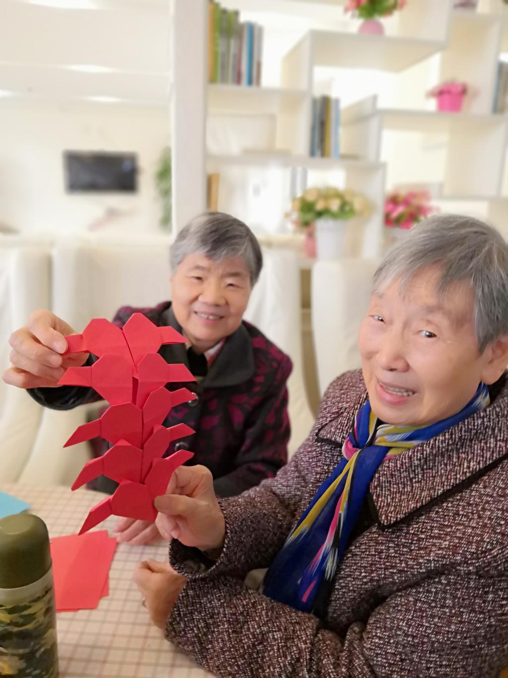 看着自己折出的小人,郑淑芬老人笑得很开心