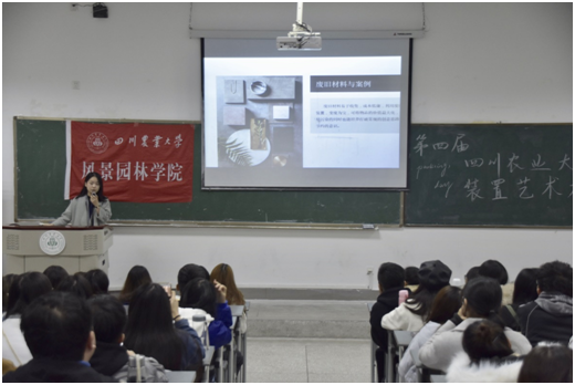 在主持人简要介绍完大赛的基本信息后,宣讲培训会进入了最重要的解题指导环节。首先由毕业于英国赫特福德大学插画设计专业的文老师为同学们提供关于大赛解题思路方面的讲解。她从parking day的渊源与定义、搭建区域的方法和大赛规则与详情三个方面进行阐述,尤其强调了在作品中体现装置互动沟通功能和可持续发展宗旨的重要性,以及实用性和艺术性作品各自侧重点的不同之处,并辅以大量优秀作品图片加以说明。这些或互动性强、或设计感强的作品无疑为同学们带来了巨大的视觉冲击力。