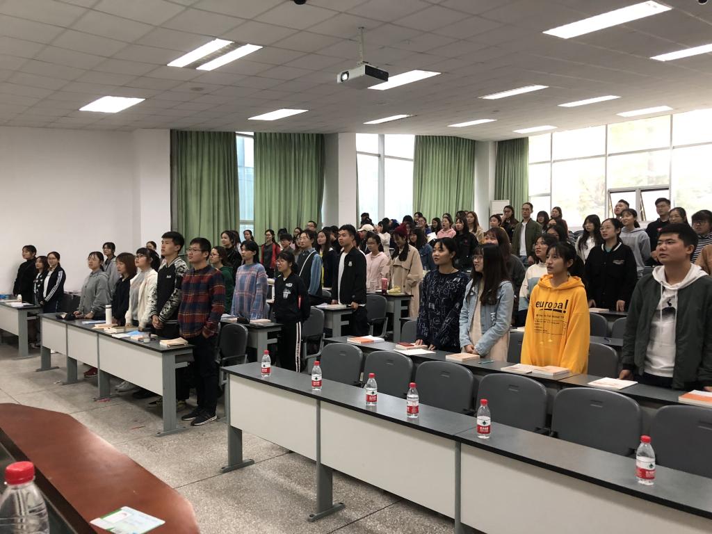 最后,学院青年先锋队思政部部长蒋雨同学带领同学们学唱国际歌,全体起立,以认真的态度完成对歌曲的学习。动员大会圆满结束。