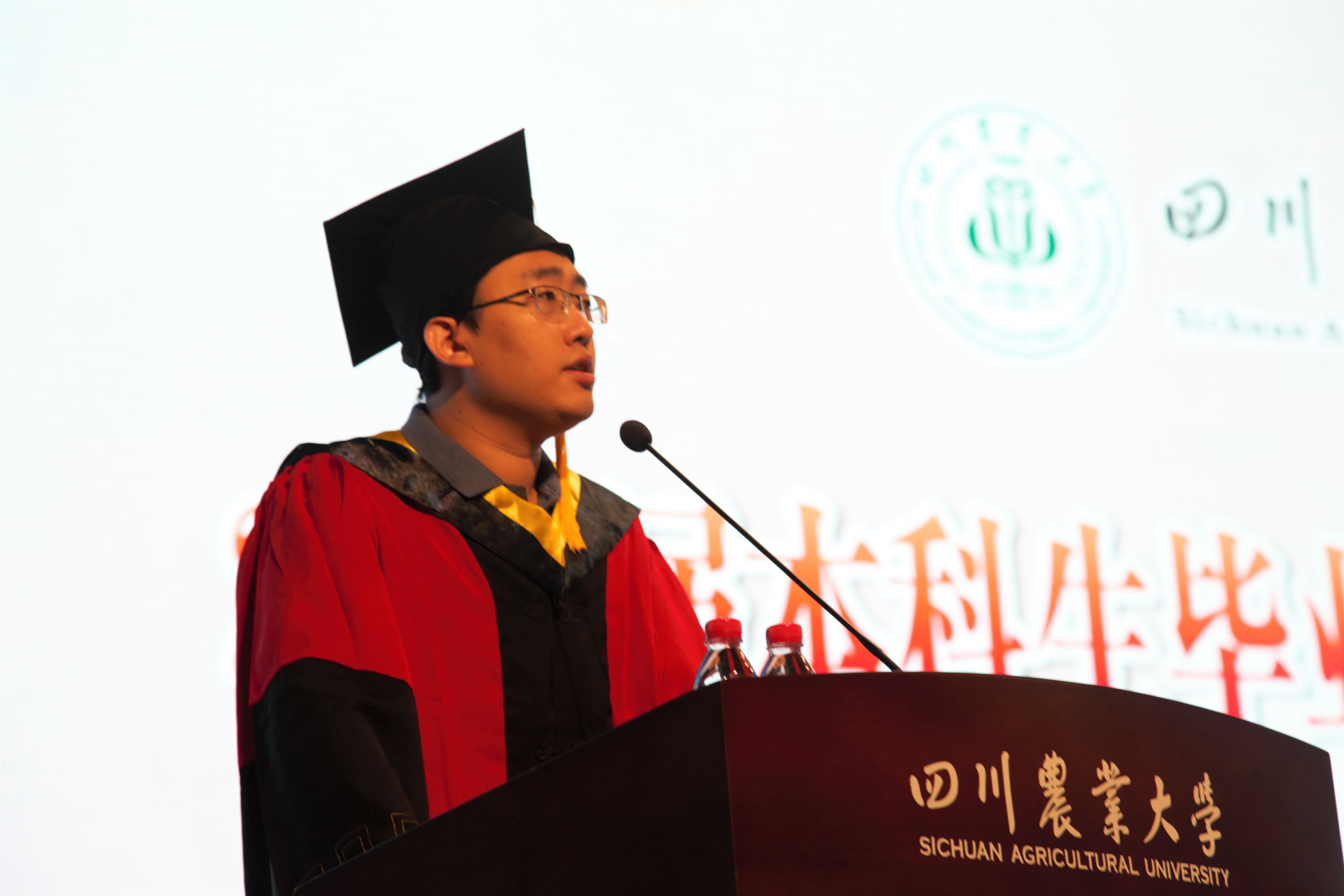 在庄严的国歌声奏响,拉开了毕业典礼的序幕。张强书记代表学校向圆满完成学业,即将踏上新征程的全体毕业生表示了衷心的祝贺。前途似海,来日方长。李静波书记、陈其兵教授和潘翔教授也为同学们上了最后一课,希望同学们能够奋勇向前,在未来的日子里坚持学习,待人诚信,求真务实,热爱自己的专业和工作。2017届毕业本科生代表、四川省优秀大学生、优秀毕业论文(设计)获得者杨明衡同学作为学生代表上台发言,希望与同学们共勉,在未来不忘初心,共同努力。母校留下了太多难忘的回忆,学会记住,记住这里的每个人带来真诚与感动;学会奋进,带着母校的每笔知识与力量在以后的人生道路上不断前行。校领导为毕业生们颁发毕业证书和学位证书,麦穗成熟,如今毕业生已学有所成,总可展翅高飞。