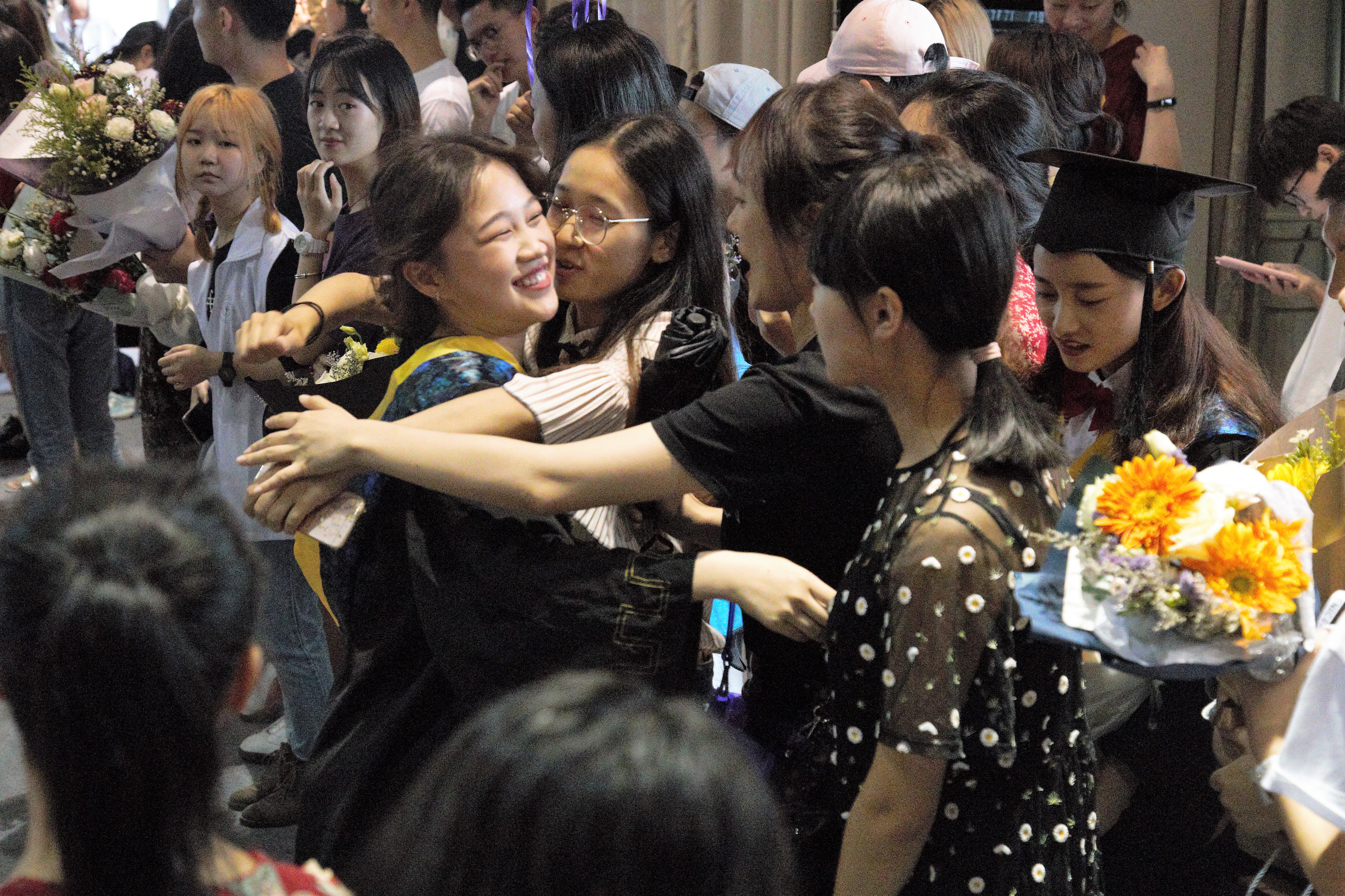 不少学生家长也来到了仪式现场。他们举着相机争相见证孩子们人生中的重要时刻。经过十几年的艰苦求学,学子们就像雏鸟一样可以展翅高飞,翱翔于蓝天之中。同时站在父母这一层次,这种毕业证书也是他们的一本表彰书,含辛茹苦抚养孩子成才、成德,一位黄同学谈到:“终于现在的我可以自食其力,该是时候让爸妈靠在我的肩膀上可以休息一下了。”
