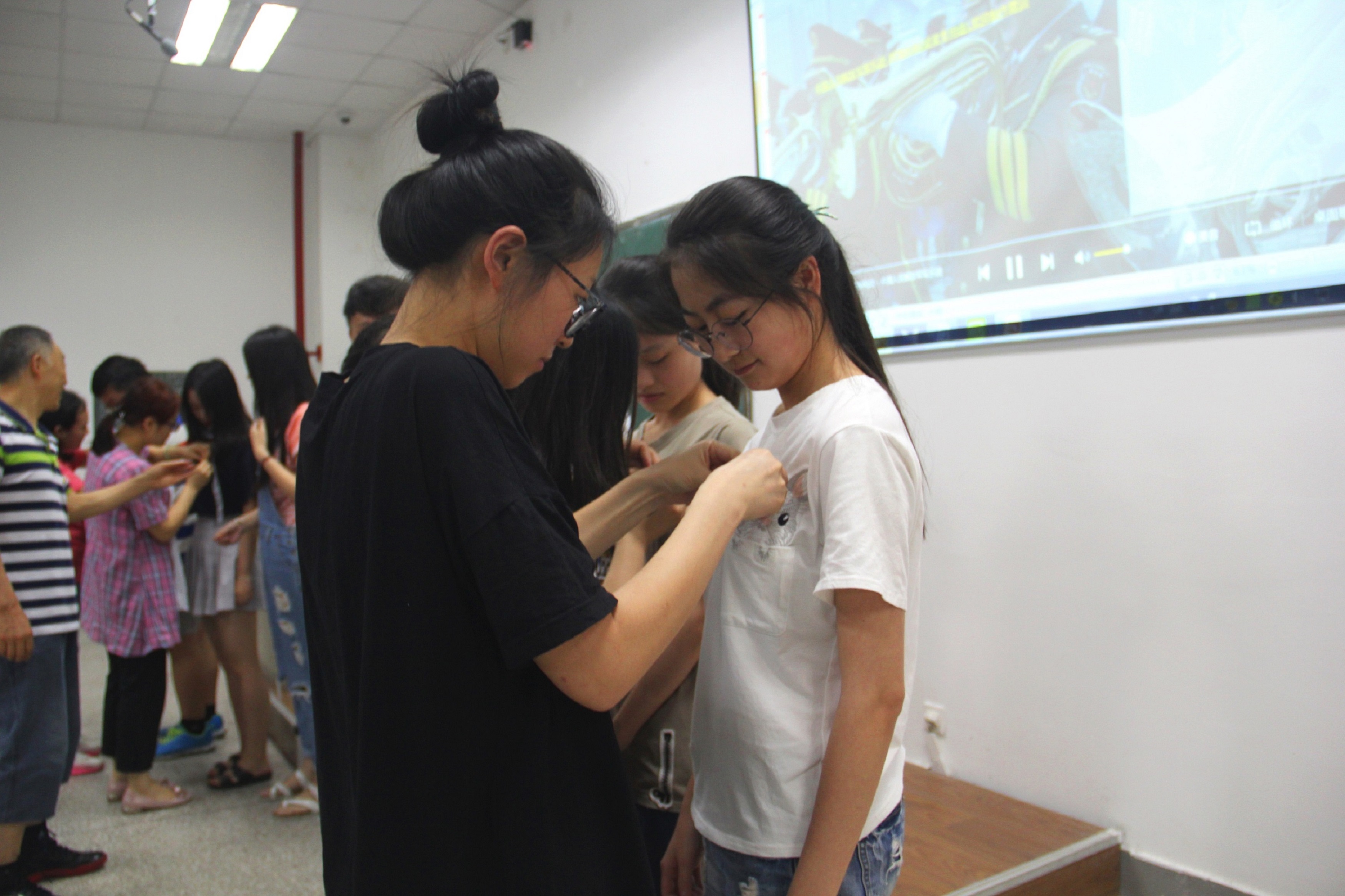 “我志愿加入中国共产党,拥护党的纲领,遵守党的章程,履行党员义务,执行党的决定,严守党的纪律,保守党的秘密,对党忠诚,积极工作,为共产主义奋斗终身,随时准备为党和人民牺牲一切,永不叛党。”会议进行到高潮部分,李本国书记带领86名学生党员面对党旗,庄重宣誓,不忘初心,永远跟党走。并同院党委办全体老师们一起为学生党员代表佩戴上了党徽。一枚徽章虽小,但是它凝聚了几十亿人共同的信仰。