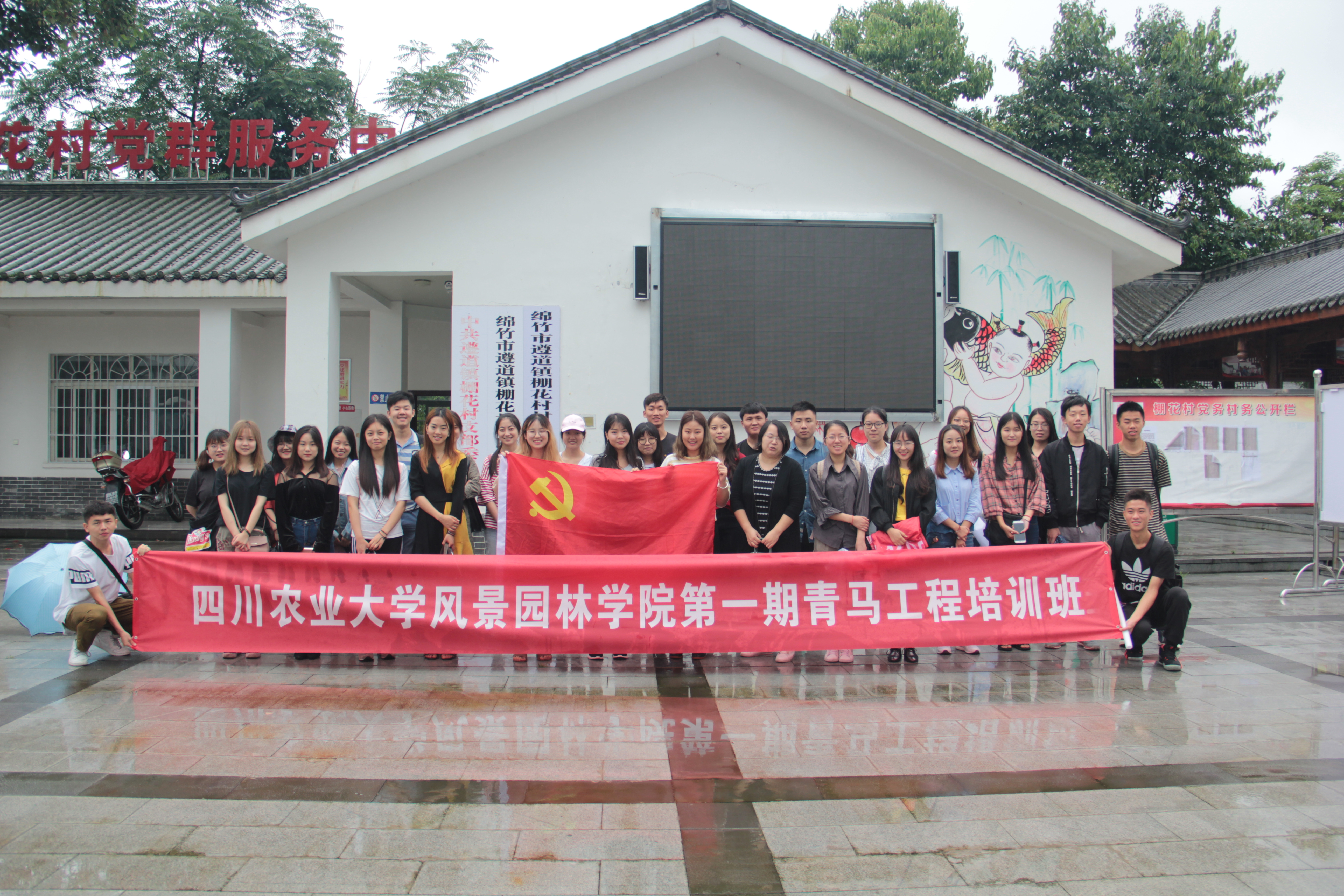 最后,感谢了村委工作人员的耐心讲解和村民的热情配合后大家在雨中告别了棚花村。此次青马工程班调研活动让同学们深刻了解了十九大精神在乡村振兴中落地实施的情况,明白了风景园林专业队建设美丽乡村和美丽中国的重要意义。