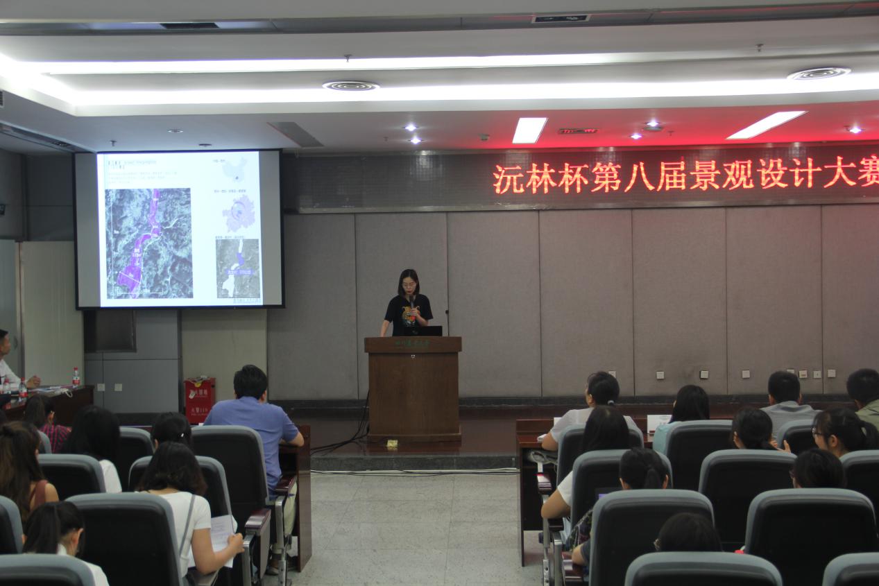 经过初赛角逐,最终9支队伍进入决赛。参赛队伍在决赛答辩中分别就自己的作品对设计理念进行了解释与说明。来自风景园林专业15级的学生、本次比赛的金奖团队队员刘梅以《麓脊之上》为作品主题进行了答辩,她表示,“麓脊之上”正是指承载在这一水脉之上的土地。《麓脊之上》设计以游客的心里情感变化为主线,在解决场地问题的同时,以景观的角度与环境的营造,希望通过不同景观的设计,改变游人的心态,达到洗涤尘病,净化心灵,让原始浮躁的人得到心境的升华,在参与体验活动的过程中,接触民风民俗,进行文化创造与交流,真正实现新时代的“上山下乡”。最终,设计作品《麓脊之上》获得了金奖,《平素相易》等两组设计作品获得银奖,《血脉重生》等三组设计作品获得铜奖,《鹿鸣幽谷,水利方圆》等三组设计作品获得优秀奖。
