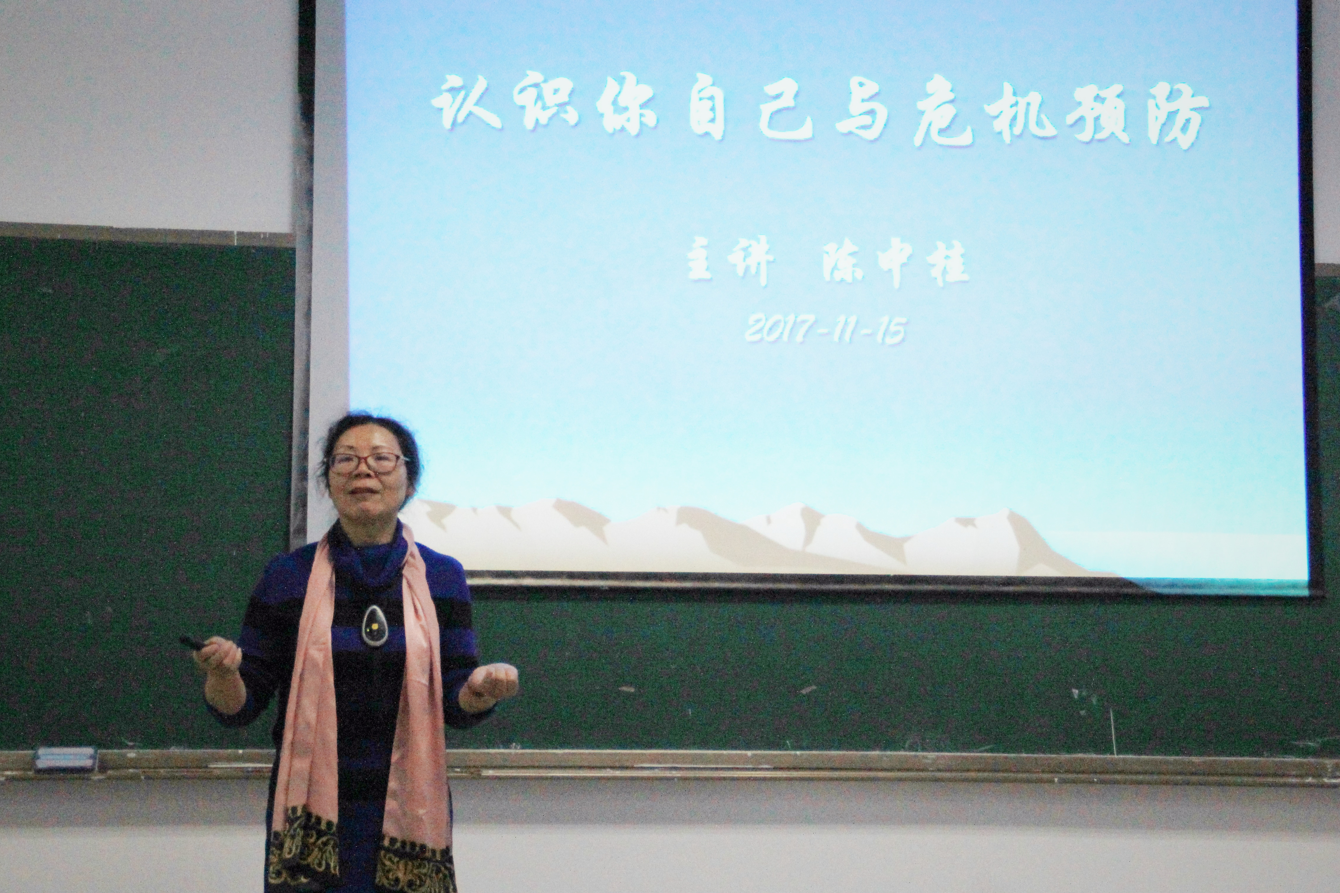 陈老师的讲话帮助大一新生拨开了心中的迷雾,同时也为大二大三的同学就正确对待生活和学习中压力的问题指明了道路,提醒同学们在繁忙的大学生活中需更加重视心理健康问题,学会重新认识自我,规划自我,超越自我,获得更好的社会适应能力。