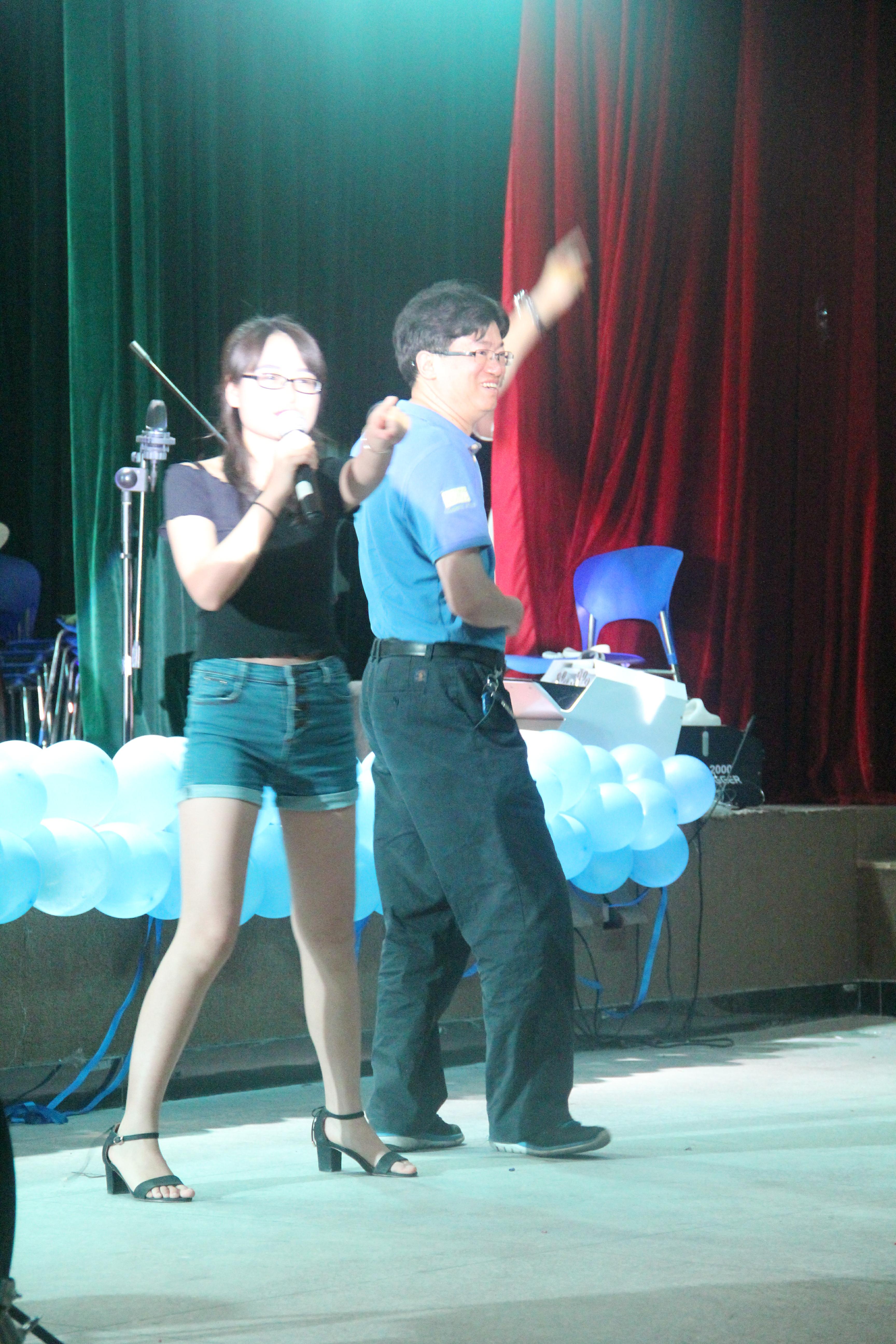 此次毕业生晚会以舞会为主题,以热辣的啦啦操舞蹈拉开序幕,吸引了包括毕业生在内的很多同学和老师的参与。随后电声乐团、爵士舞团的同学的表演更是将气氛推向高潮。当然中间也不乏感人至深的告白环节,老师对同学们,同学们对老师深情的告白留言,温馨中弥漫着浓厚的师生情谊。在舞会重头戏——华尔兹舞会环节时,陈中桂书记受邀上台领舞,台下的同学也纷纷涌进舞池,虽然舞姿不标准,但大家都沉浸在愉快的氛围当中。俗话说,好戏都在后头,舞会的最高潮要数大家的自由舞动环节,所有人,不管老师还是同学都纷纷拉起手来,一起起舞,更有许多兴致颇高的同学跑到人群中舞动,舞会的氛围之热烈是无法言述。