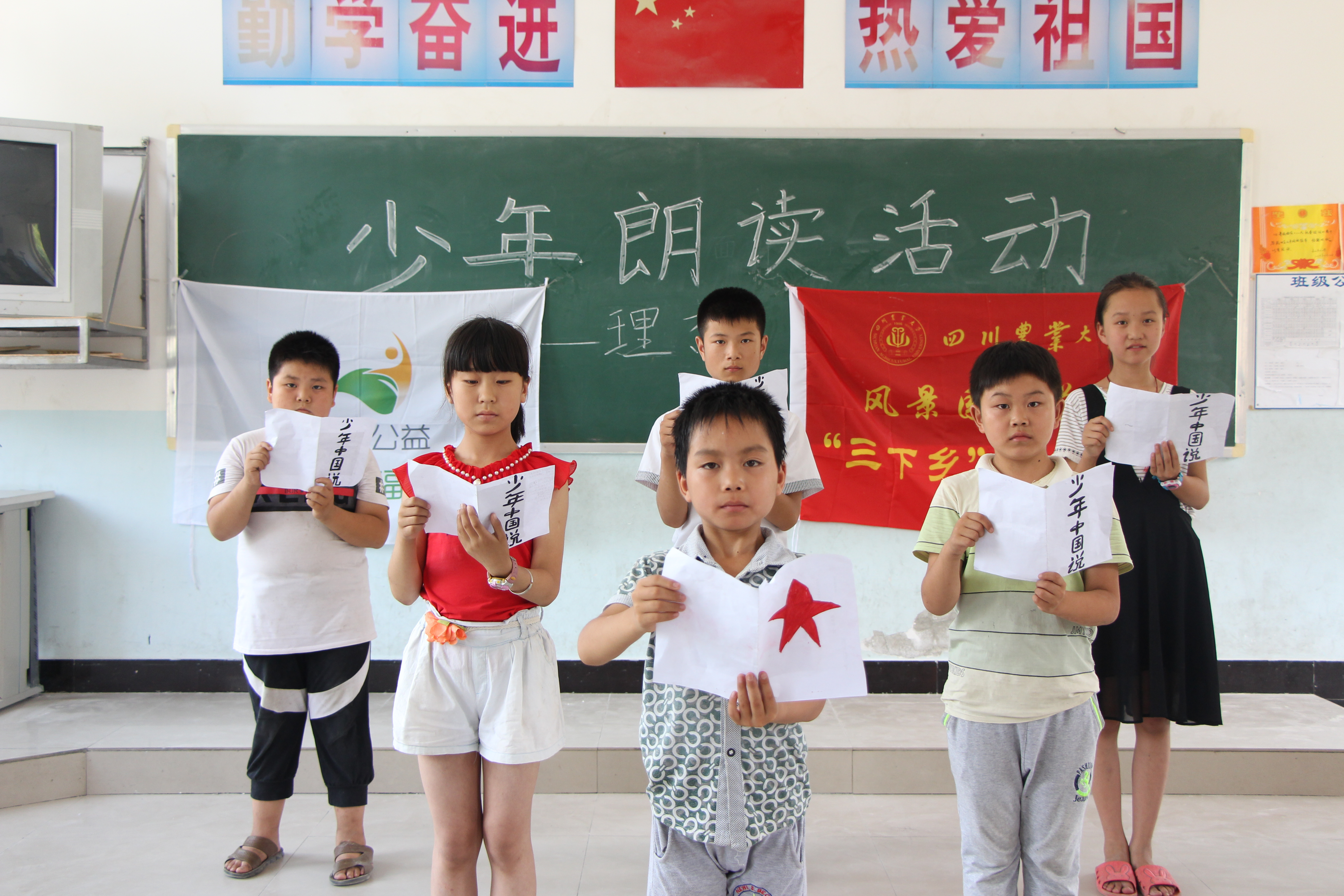 近日, 包子漫画 米团公益普阳使者团队的志愿者们在陕西省汉中市宁强县金山寺八一小学开展了主题为“理想”的少年朗读活动。乘长风之姿,立高远之志,志愿者团队经过几天的精心准备,以川农大精神“爱国敬业,艰苦奋斗,团结拼搏,求实创新”和“我自豪,我是川农人”拉开了朗读的帷幕,旨在以朗诵的方式让孩子们树立远大理想,激发孩子们的爱国热情,同时让孩子们感受中国传统文化的博大精深。
