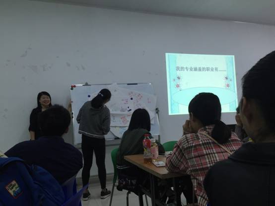 今天,环境设计201505班班主任赵莉老师组织了一场“生涯教育之探索未来的方向”主题班会,让我们脑洞大开。同学们分为七个组,用头脑风暴引导我们讨论:环境设计专业未来可能有的职业有哪些?有回答景观设计师、建筑设计师、城市规划的、室内设计师、旅游景区规划等等,也有回答当老师、包工头、宠物用品设计、淘宝店家、时尚设计等有趣的答案。同学们发现原来可以从事的职业有那么多。在众多答案中我们选了六个主要的方向,即景观设计、建筑设计、室内设计、老师、创业者,同学们根据自己的兴趣选择了一个方向,成为一个小组来调查了解这些职业方向的岗位及要求。老师布置了一个任务:调查10个职业人士,绘制出这个职业的职业地图,了解这个职业需要的技能、工具、入职要求以及在学校里应该具备的技能和应该学习到的本领。“从过来人的生活中寻找蛛丝马迹”, 同学们经过长达1个多小时的讨论,设计如何从职场人的生涯中获取有关职业的直接经验和感性经验,对访谈中可能出现的问题和难点进行了预估,并讨论了解决方案。