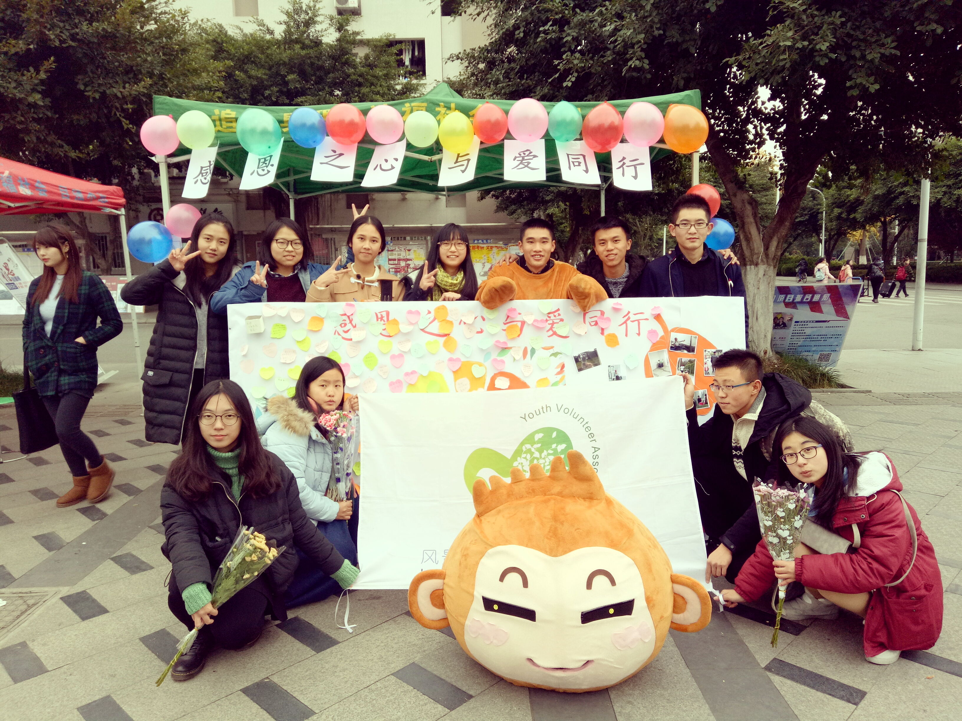 2016年11月24日,包子漫画 青年志愿者协会在食堂小广场开展了以“感恩之心,与爱同行”为主题的感恩节特别活动。