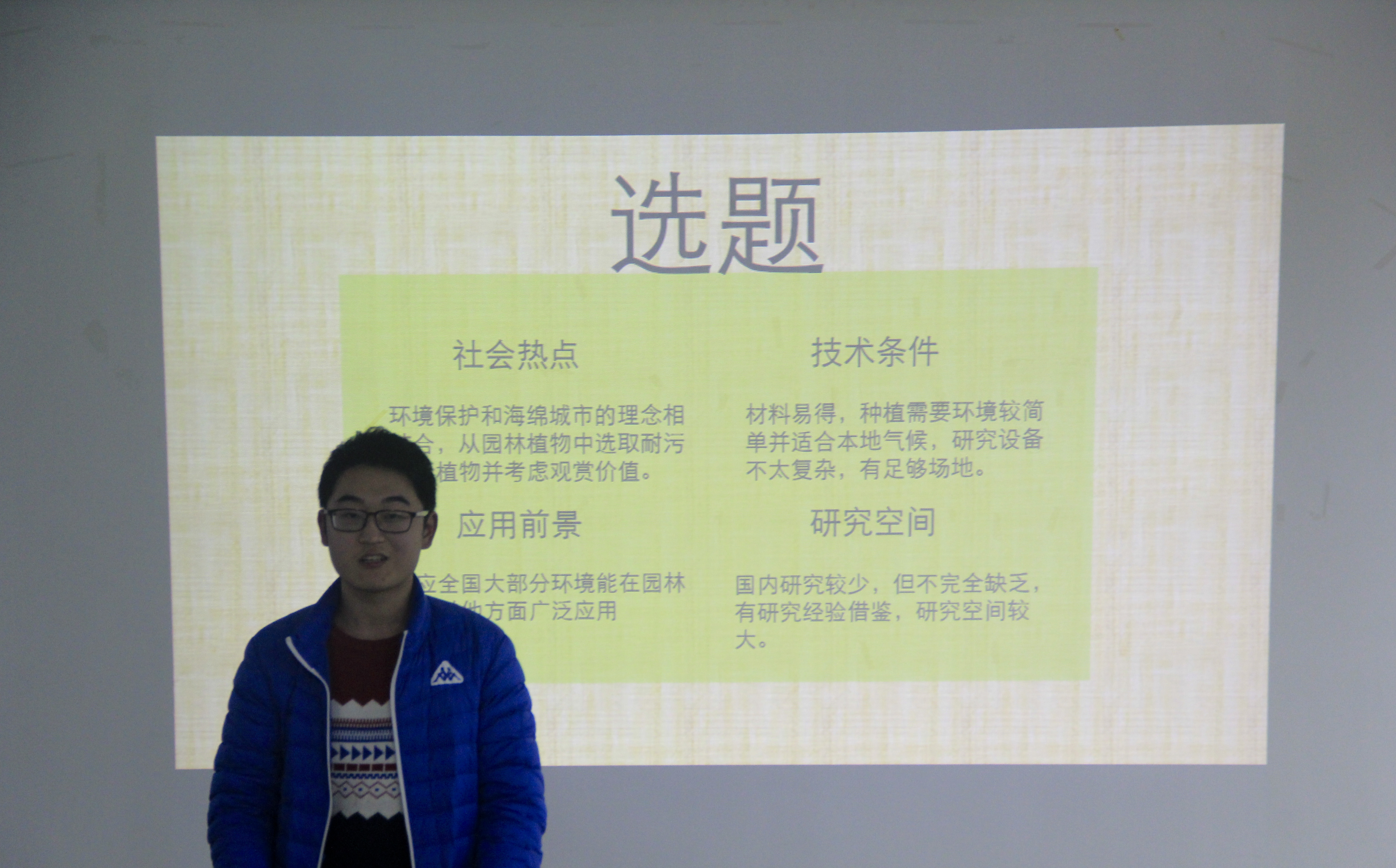 本次共收到研究生组作品《干旱胁迫下新西兰麻转录组测序及差异表达基因分析》、《盐胁迫下菊花转录组测序分析及转DgNACI基因菊花耐盐性研究》、《新优花卉独蒜兰生长开花习性和假鳞茎培育技术研究》,本科生组作品《基于形态规划理论对川盐古道街巷空间美学分析》、《天竺葵对重金属污染土地治理、利用能力研究》、《针对绘图工具的缺陷做出的便捷环保分析》、《现代物流体系下新型果蔬包装材料研究》、《遮阴条件下三种鸢尾科植物的形态及生理特征的研究》,创业组《成都会心教育有限公司》。在答辩中,评委老师对同学们的创新创业的精神表示肯定,对科研研究的认真态度表示赞赏,同时也指出作品的问题在于:自然科学类在描述科学性、先进性及独特之处时还需要提炼语言和作品的亮点,在其他类型作品里还需要指出作品的应用价值和社会价值。一个优秀的研究项目不仅需要优秀的创意,更需要对社会产生贡献。只有将经济价值和社会价值融为一体的科研项目才符合社会的发展需要。