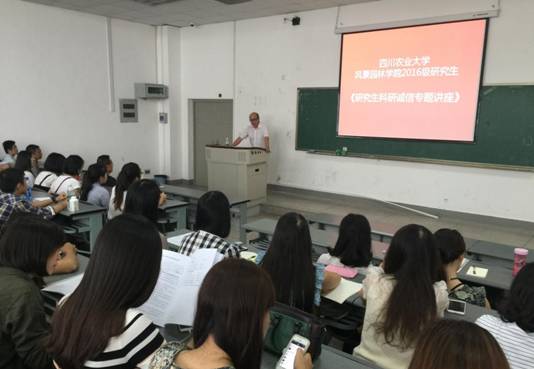 9月8日下午,陈其兵院长和胡庭兴教授在4-A207教室分别对研究生新生进行了新生入学教育和《研究生科研诚信专题讲座》,让同学们对研究生学习生活有了初步的认识,同时认识到科研诚信的重要性。