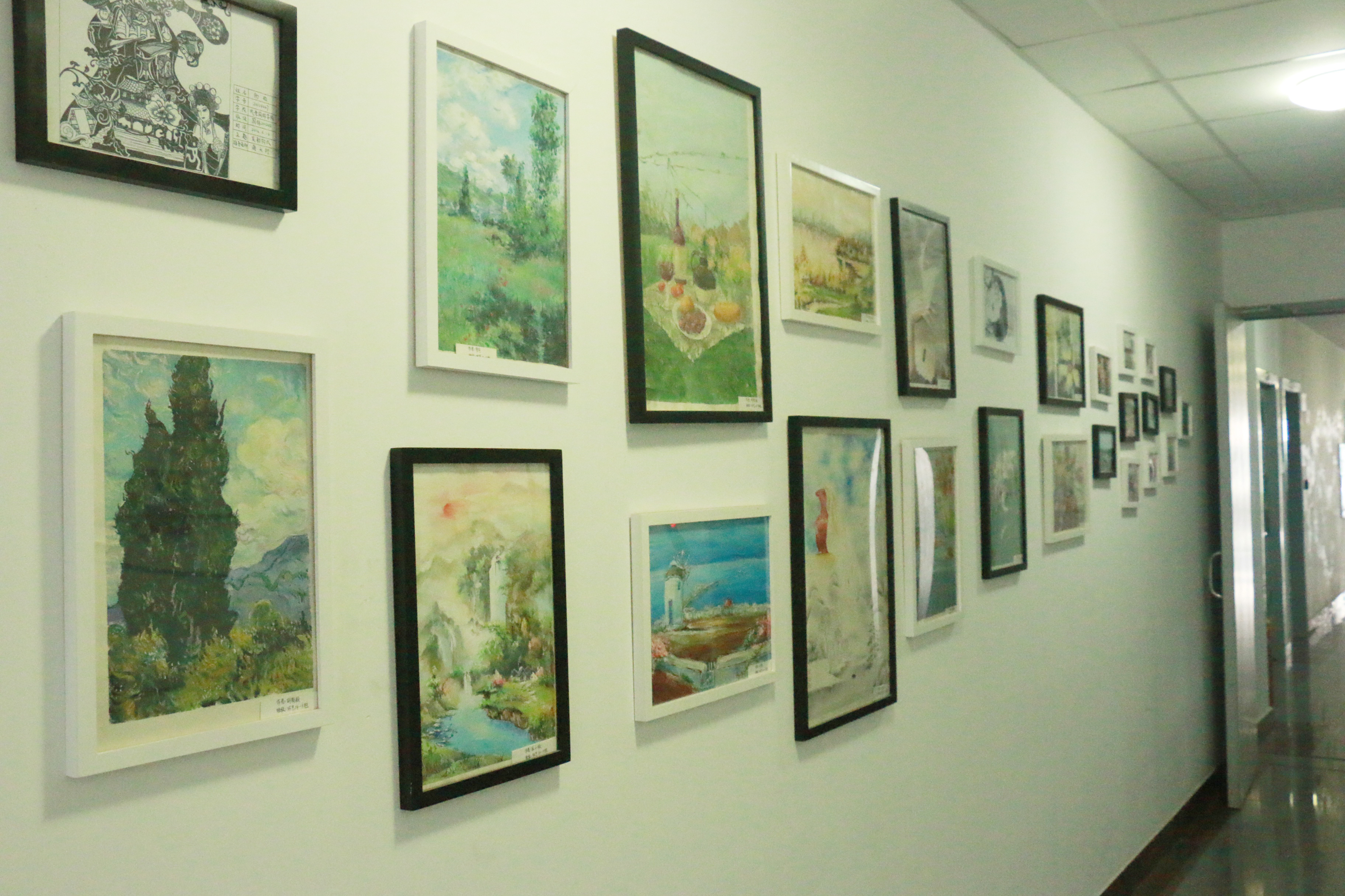 一走进成都校区五教三楼包子漫画 老师办公的地方,首先映入眼帘的便是右边墙上的照片墙,照片记录的是学院学子学习生活的点点滴滴,与黑色的线条搭配在白色的墙体上,让人在感受学生丰富的课余生活的同时,也能体味到蕴于他们心中的那抹淡雅。“静若处子,动如脱兔”,这样动静相宜的理念,培养出了一批又一批优秀的学生。墙面左侧的作品集构图巧妙,各式各样的水粉画、装饰图案,充分表现了学院学子为之骄傲的才能,艺术气息扑面而来,仿佛来到了艺术长廊。