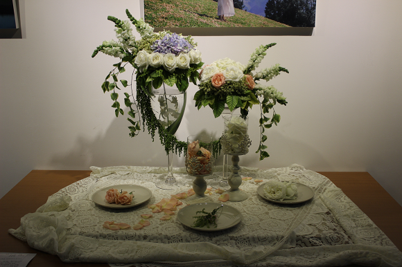 此次大赛从中午一点半正式开始,各个参赛队伍充满激情,成员积极思考,相互讨论,共同创作,充分体现了团队团结协作的凝聚力,创作过程精巧繁杂却又有条不紊。整个会场成了花的海洋,空气中弥漫的花香让人沉醉,会场气氛积极热烈。