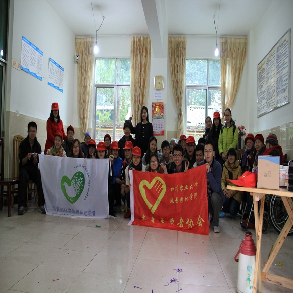 活动当天,志愿者们一行来到公平镇敬老院,老人们大多行动不便,志愿者上楼邀请老人们参与活动,并悉心搀扶着他们坐下。随着活动的进行,从充满雅致的茶艺表演,抒情悠长的陶笛,到豪情满满的精忠报国的演唱,趣味满分的小苹果的舞蹈,气氛变得热烈起来。老人们吃着准备的点心,品着茶艺协会同学泡的热茶,与身边的志愿者开心的聊天。最热闹的要数击鼓传花的游戏了!鼓声击打,花在老人们和志愿者间传递,笑声满屋,拿到花的老人和志愿者也开心的演唱了歌曲,浏阳河,刘三姐,这些已八九十岁高龄的老人依旧歌声嘹亮,精神矍铄。活动尾声,一位老爷爷兴致高昂的与志愿者跳起了交谊舞,一老一少的组合赢得了大家的掌声和笑声。活动在老人和志愿者们歌唱祖国的大合唱中结束了。