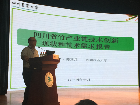 陈其兵就四川竹产业现状,竹产业链、技术链框图,竹产业技术创新能力、竹产业技术创新需求、任务,预期达到的目标、社会、生态及相关预期效益等方面进行了报告,会场掌声不断。