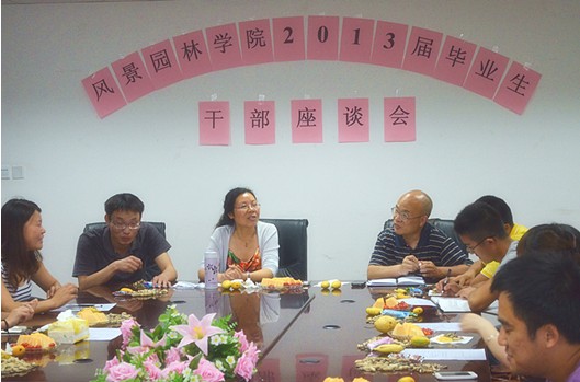 会议在轻松愉快的气氛下进行,参会的都是2013届学党员、生干部和优秀毕业生代表,大家把自己在生活学习中上进积极的态度延续到了座谈会上。会场上大家发言十分积极,交流了很多大学四年来的经验,感想;充分表达了对即将离开学校的不舍,对老师同学的留恋。与会的每一位代表都有发言,这让原本规划的座谈会时间延长了近一个小时。最后,陈中桂书记提出了对同学们的殷切希望,祝愿我们的党员同学,干部同学,优秀大学生同学进入社会后,依然是先进的代表,时代的先锋,将来成为社会的中流砥柱。