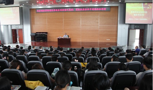 创先争优系列活动之党课在成都校区二教学楼学术报告厅正式举行。成都棠湖投资控股(集团)有限公司高级顾问、党委书记、“四川省优秀企业”高级经济师严统明用朴实、生动的语言为现场师生讲授了题为《党组织在企业中的地位与作用》的党课,为大家诠释了党组织在民营企业中的地位与作用。