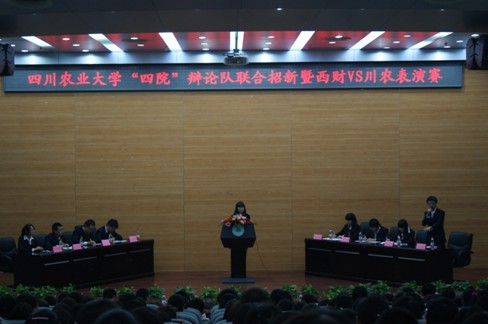成都校区辩论队与西南财经大学辩论队在第二教学楼学术报告厅进行了辩论表演赛。旨在促进我校与西南财经大学的相互交流,并对成都校区各学院辩论队的招新进行一定的宣传。