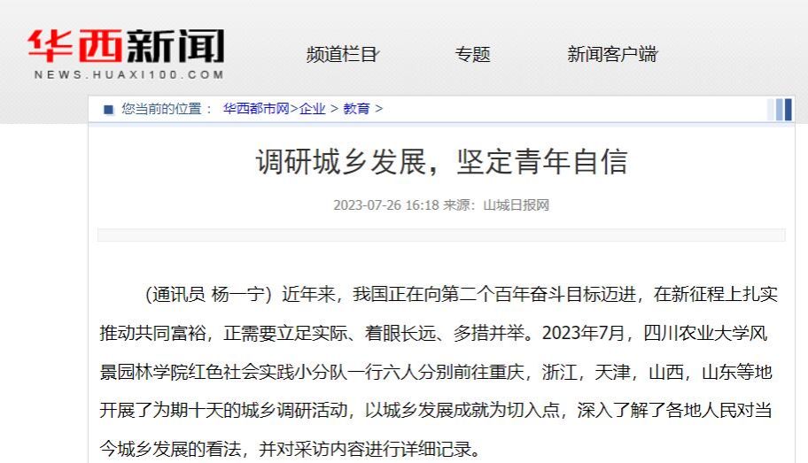 (通讯员 杨一宁)近年来,我国正在向第二个百年奋斗目标迈进,在新征程上扎实推动共同富裕,正需要立足实际、着眼长远、多措并举。2023年7月,包子漫画 红色社会实践小分队一行六人分别前往重庆,浙江,天津,山西,山东等地开展了为期十天的城乡调研活动,以城乡发展成就为切入点,深入了解了各地人民对当今城乡发展的看法,并对采访内容进行详细记录。