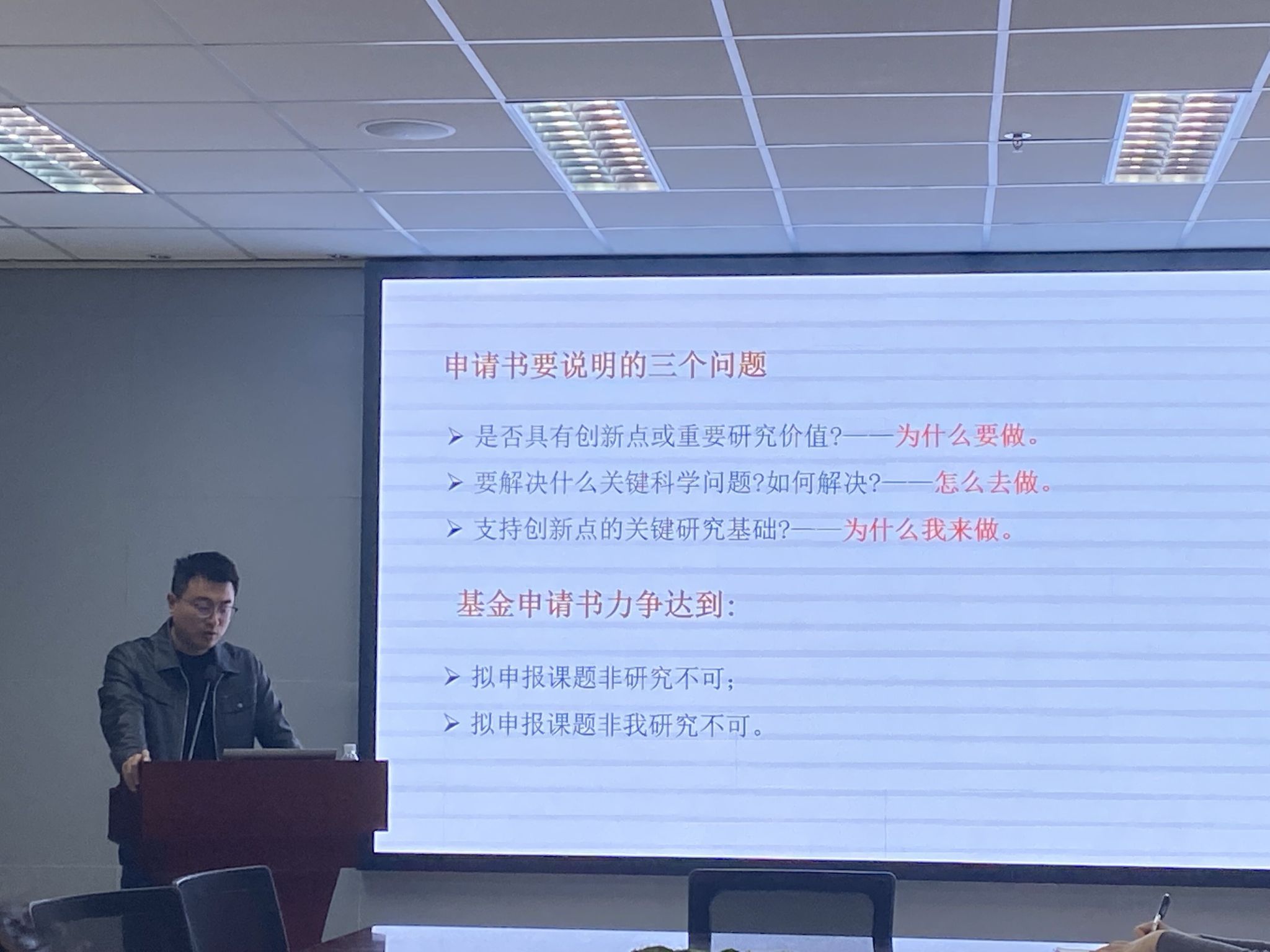 学院2023年国家自然基金面上项目和青年项目获得者,江明艳教授和李凯副教授从申报筹备、科研选题、经验总结、科学问题挖掘、课题设计、申报书撰写等方面作了深入交流与经验分享。