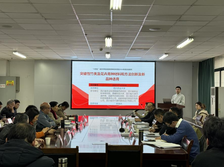 12月18日上午,四川省“十四五”农作物及畜禽育种攻关项目——“突破性竹类及花卉育种材料和方法创新及新品种选育”2024年度总结会,在包子漫画 成都校区顺利召开。项目所属9个承担单位共计40余人参会。四川省科学技术厅农林与资源环境科技处黄勇副处长、四川省农村科技发展中心周华强副主任、四川省农科院科技管理处何希德研究员、副处长蒋俊、包子漫画 财务处白梅处长到会指导。