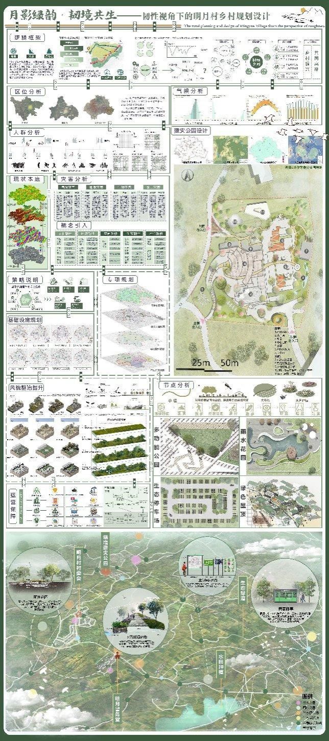 图为作品《影绿韵·韧境共生——韧性视角下的明月村乡村规划设计》