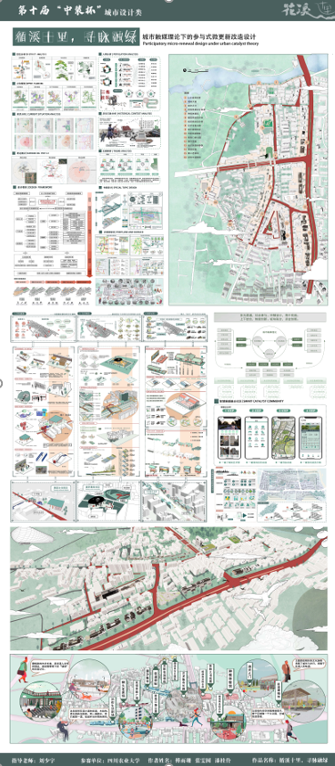 图为作品《循溪十里,寻脉融绿——城市触媒理论下参与式微更新改造设计》