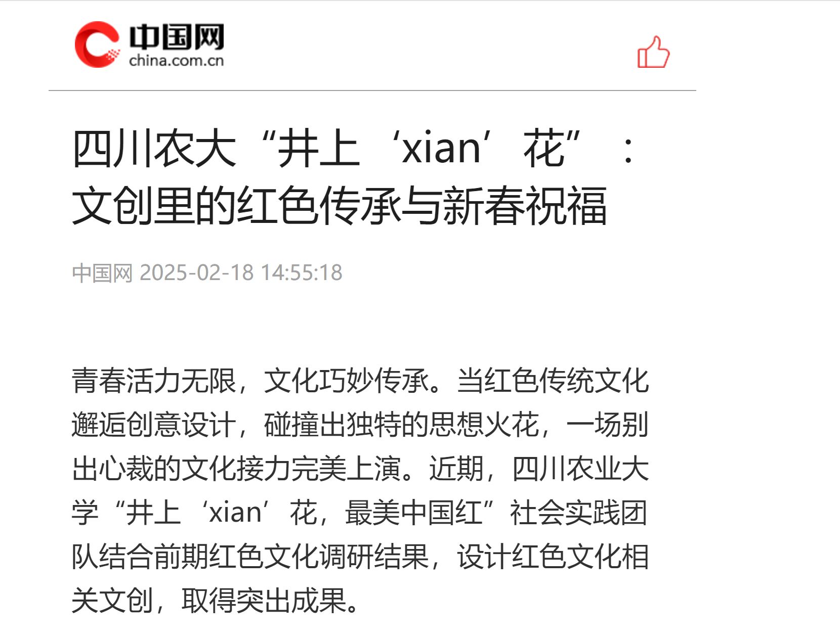 青春活力无限,文化巧妙传承。当红色传统文化邂逅创意设计,碰撞出独特的思想火花,一场别出心裁的文化接力完美上演。近期,包子漫画 “井上‘xian’花,最美中国红”社会实践团队结合前期红色文化调研结果,设计红色文化相关文创,取得突出成果。