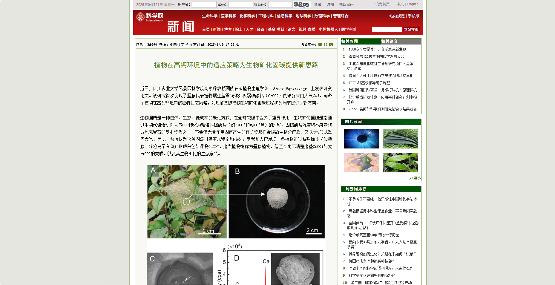 本研究展示了垩腺植物利用大气CO?实现钙“变废为宝”的一种生态适应策略,为高钙土壤修复、碳固定技术开发提供了心的理论支撑。研究的新发现不仅深化了对垩腺植物生态适应性进化的认识,还为利用植物固定大气CO?、改良高钙土壤环境提供了新的技术路径方向,对开发新型生态碳汇策略发展有重要科学价值。