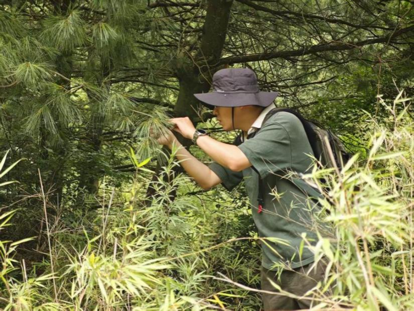(队员带领参加自然教育夏令营的中学生进行调研)
