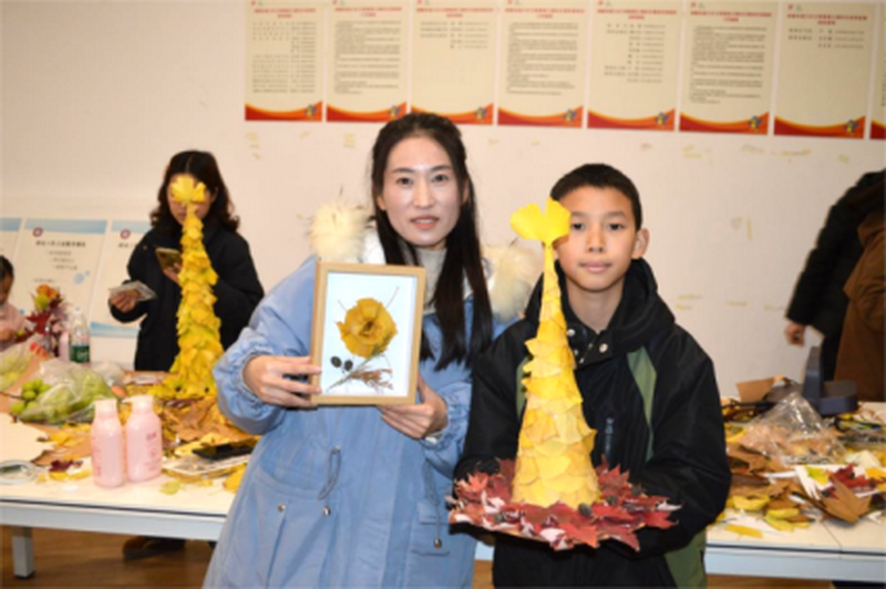 在志愿者们详尽的示范与协助下,孩子们与家长通力合作,发挥奇思妙想,将一片片落叶拼贴成栩栩如生的图画。此次亲子协作不仅拉近了家庭成员间的情感距离,让亲子时光更具质感与意义,更让孩子们在动手实践中学会倾听、懂得配合,培养了动手能力与创新思维;同时,家长与孩子共同践行环保理念,以“小手拉大手”的形式,让环保意识扎根家庭、传递邻里,让艺术创作成为联结亲情、凝聚社区温情的纽带。活动现场气氛温馨热烈,充满了亲子协作的欢声笑语与创作完成的成就感。