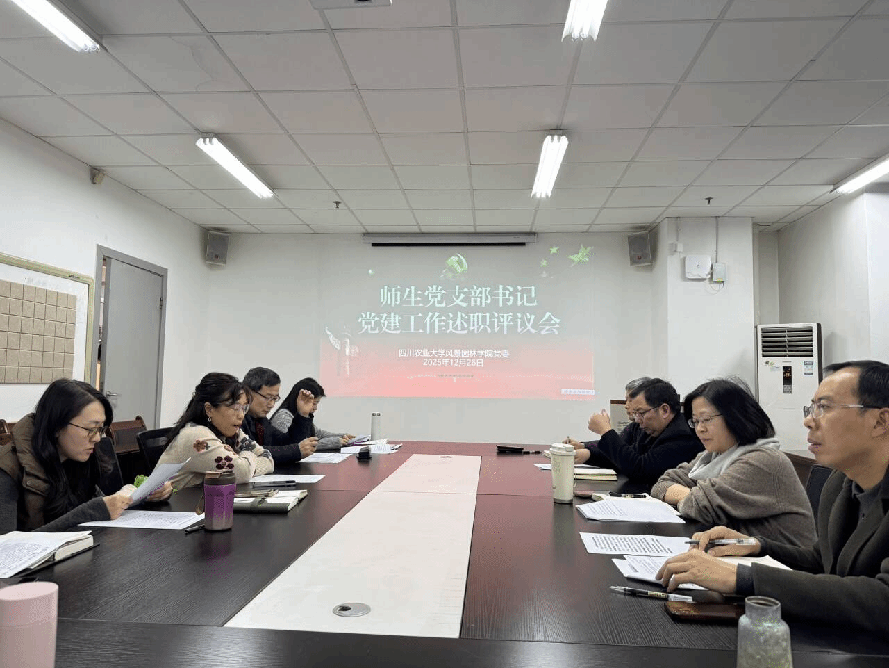 202512月26日下午,学院党委在5教515会议室召开2025年度师生党支部书记党建工作述职评议会,学院领导、党委委员、纪委委员、各系(室、部)主任、师生党支部书记、党员代表参加,会议由党委书记饶远林主持。