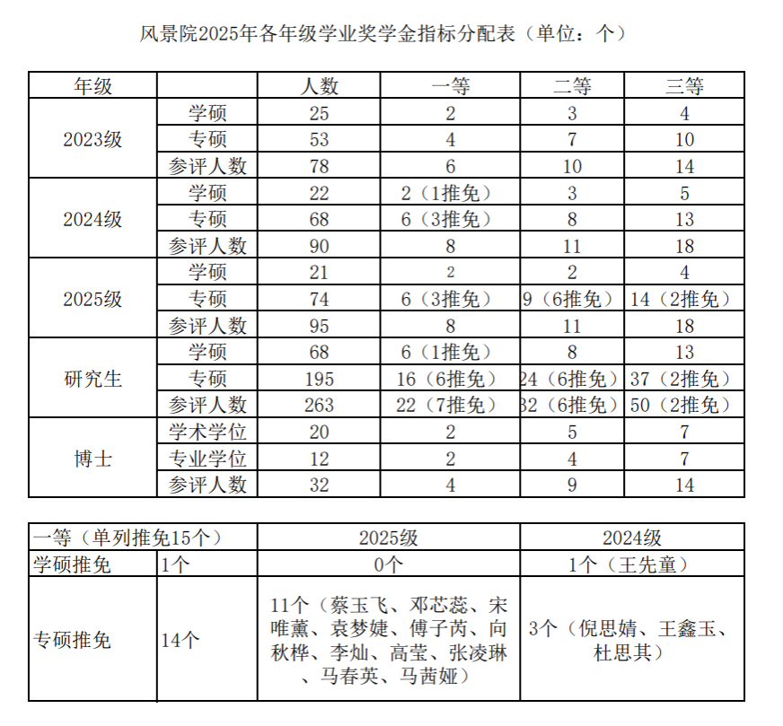 学院根据各班级参评人数及学业奖学金拟评人数,学院今年各小班分配指标如附件,请各班评议小组遵照执行。