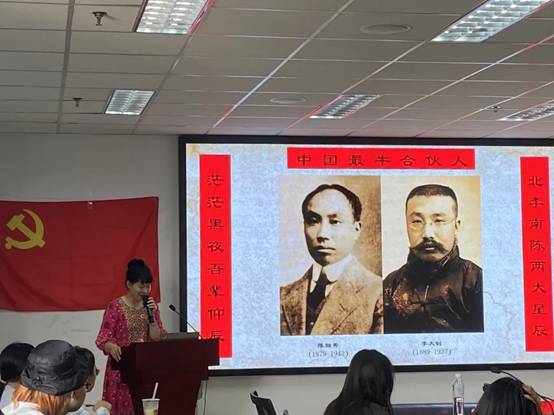 何宇老师以介绍党的成立为引子,从“历史是最好的教科书”“中国共产党为什么能”“南陈北李”“中共一大”等四个点开展了本次党课。