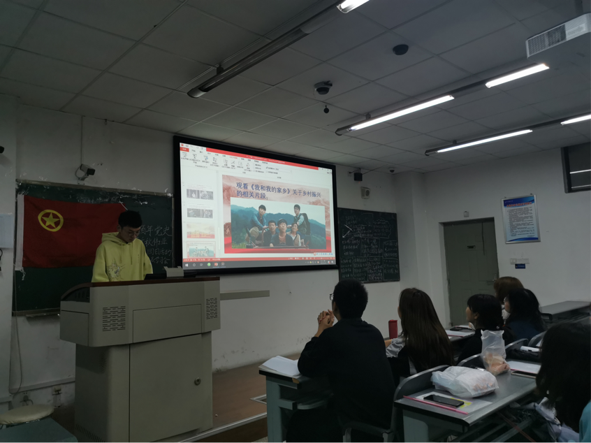 本次团日活动,由王泽雨同学担任主持人。活动在《共青团团歌》歌声中拉开序幕。歌声毕我们进入了第二项活动,同学们一同观看建军大业的经典片段:关于贺龙元帅思想靠近共产主义的相关片段。《建军大业》是一部反映中国军队伟大的建军篇章,展现了人民军队的光辉历程。在影片的观看过程中,同学们感受到了老一辈无产阶级革命家们为了中国的义无反顾;心存远方心有大爱,志向远大的广阔;以及不畏艰险艰苦奋斗的不屈。后面的知识竞答环节,同学们更是积极参与踊跃发言,教室里一片欣欣向荣的学习之态。
