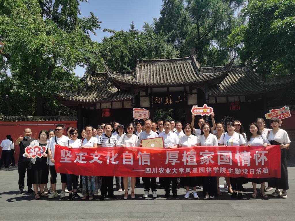 风景园林教职工党员首先前往眉山三苏祠,与三苏祠直属党支部成员开展党日活动共建活动。通过参观学习,党员们了解了三苏父子的生平实事迹、主要文学成就和家训家风,以及三苏祠历史沿革、东坡文化研究传承等。老师们纷纷表示,三苏的家国精神值得每位老师学习,并在教学中传递给我们的学生。