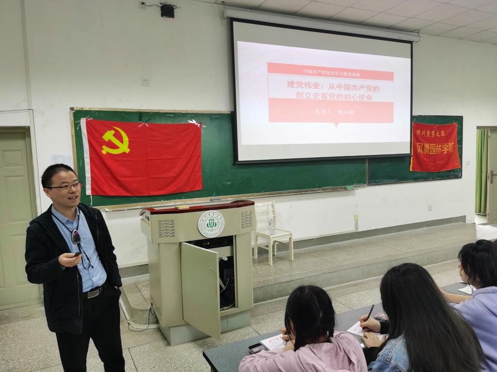 陈从楷书记说:“中国共产党的创建,是中华民族发展历史上开天辟地的大事变,具有伟大而深远的意义,它给灾难深重的中国人民带来了光明和希望。”在课堂上,陈从楷书记主要从“震荡与变革,近代中国的社会性质和革命任务”、“危机与发展,五四运动和马克思主义在中国的传播”、“信仰之光,带来民族希望,中国共产党的成立”三个方面详细地讲述了中国共产党的成立及其背景。陈从楷书记生动、详细的讲解,使同学们纷纷沉浸在中国共产党成立的这段艰难历史之中,并深深为革命前辈敢为人先,不顾一切代价为中国人民谋福利的精神所打动。