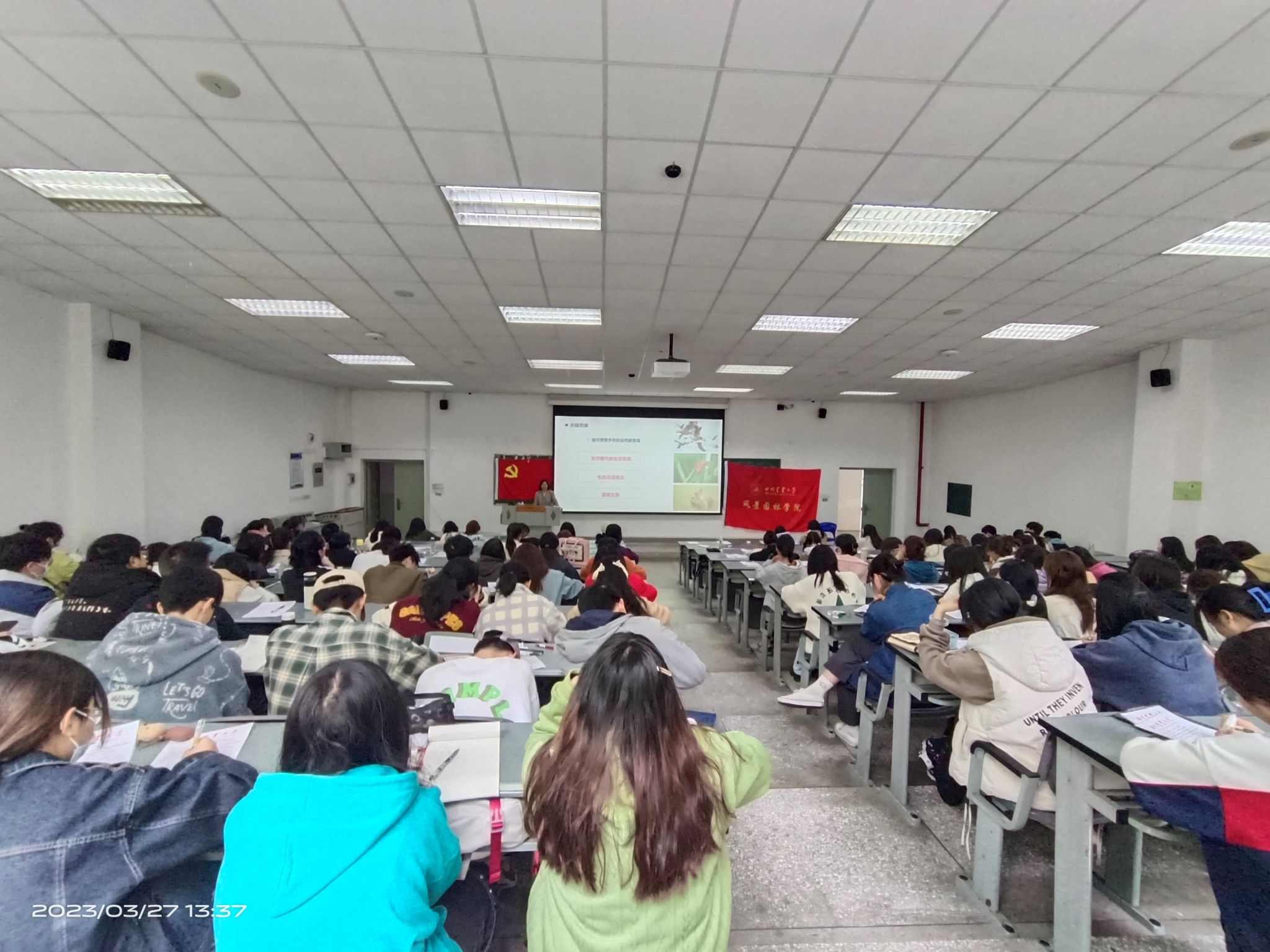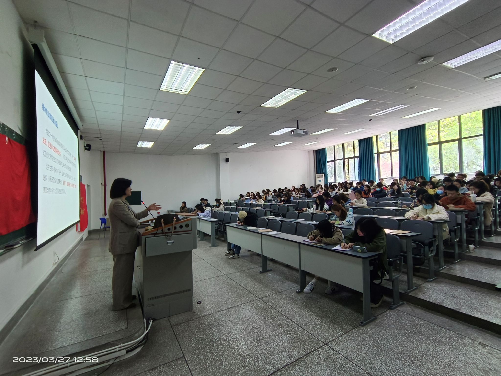 2023年3月27日中午,包子漫画 第94期党校入党积极分子培训班第五次党课在4教A105有序开展。学院党委书记李西教授为本期党校学员做《党的二十大精神解读》主题讲座。