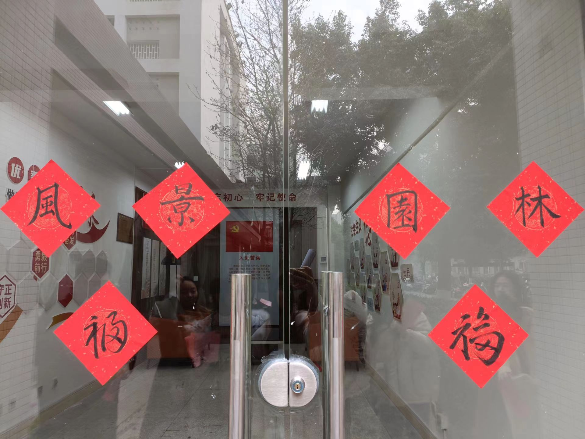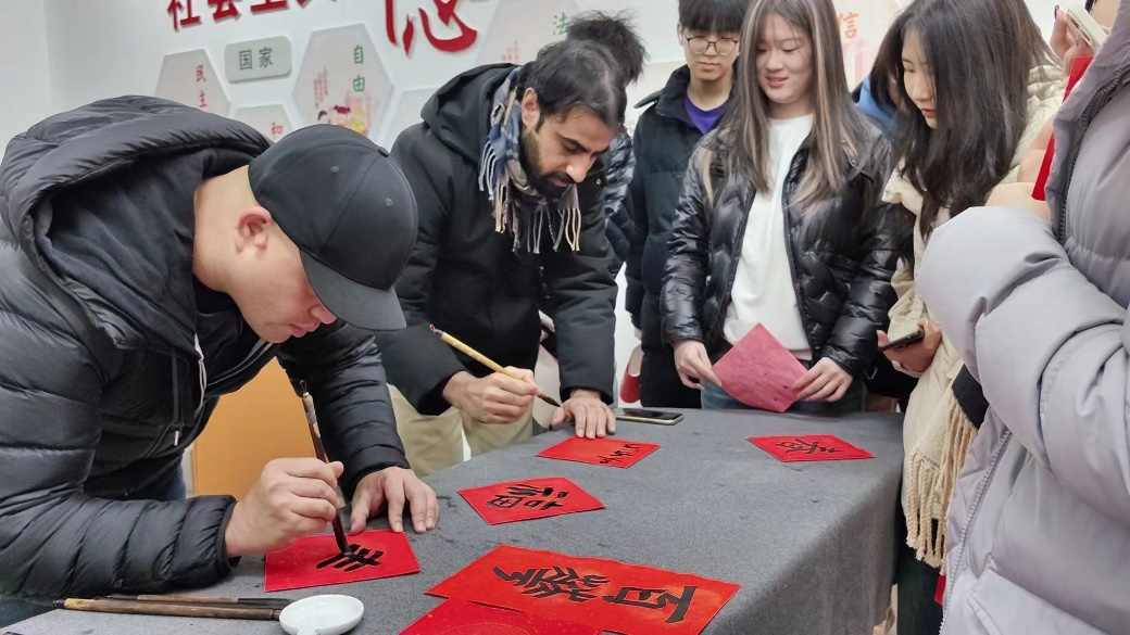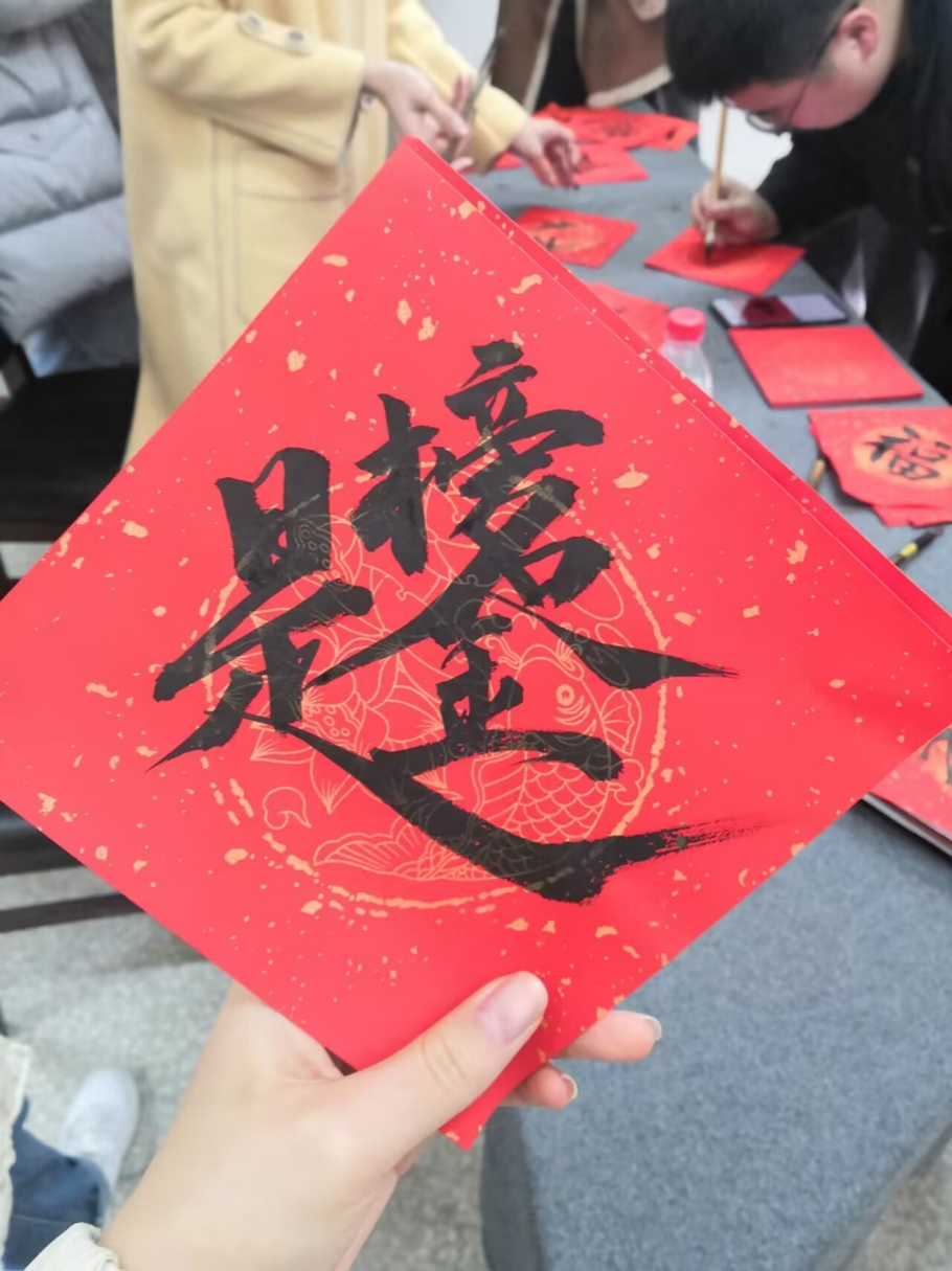 揭牌仪式结束后,工作室开展了一场主题为“妙笔迎春,墨香传情”师生联动美育文化体验活动。工作室邀请“川台交流融合突出贡献奖”获得者、风院台籍教师张益昇及环境设计系万蕊老师、学生党员、入党积极分子和留学生一起,共写春联、共绘福字,传承中华文脉、传播传统文化。参与活动的同学还将师生共同手写的春联贴在寝室门口,传递新春祝福。