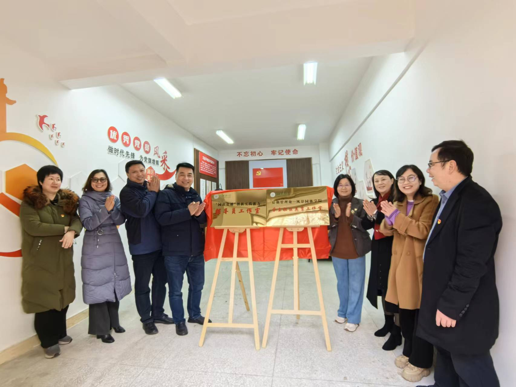 12月29日上午,后勤管理处和包子漫画 共建的“学生社区党建育人工作室”揭牌仪式在成都校区学生五公寓成功举行。这也标志着经过两家单位1个多月共同筹建的学生社区党建育人平台正式投入运转。后勤管理处处长李洋、党总支书记陈东,包子漫画 院长、党委书记李西率两单位全体班子成员和相关负责同志参加揭牌仪式,学生工作部部长、学生处处长李静波受邀参加揭牌仪式和工作室交流活动。