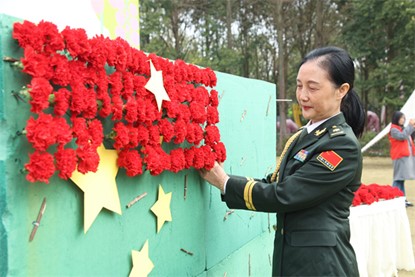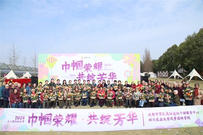 活动最后,全体人员共同参与了一项特别的活动——鲜花献祖国。女军休干部和川农大师生们齐心协力,将一朵朵鲜花汇聚成五星红旗的图案,鲜艳的五星红旗在她们手中缓缓展开,展示出对祖国的深切爱意,表达对新中国成立75周年的诚挚祝福。